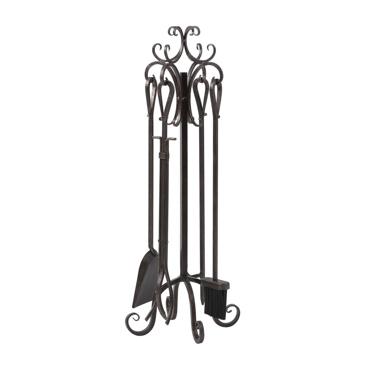 • Q: What is included in the Panacea 5-Piece Scroll Top Fireplace Tool Set? A: The Panacea 5-Piece Scroll Top Fireplace Tool Set includes a poker, shovel, broom, tongs, and a stand, providing all the essential tools for fireplace maintenance.