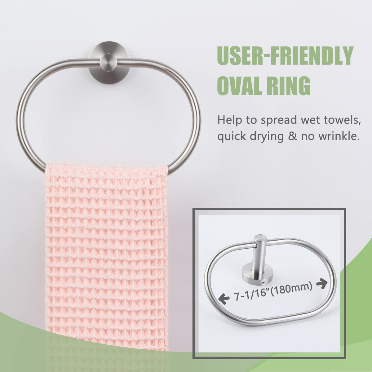 • Q: Does the Towel Ring prevent towels from falling off? A: Yes, the closed hoop design of the Towel Ring effectively prevents towels from falling off, ensuring they stay securely in place.