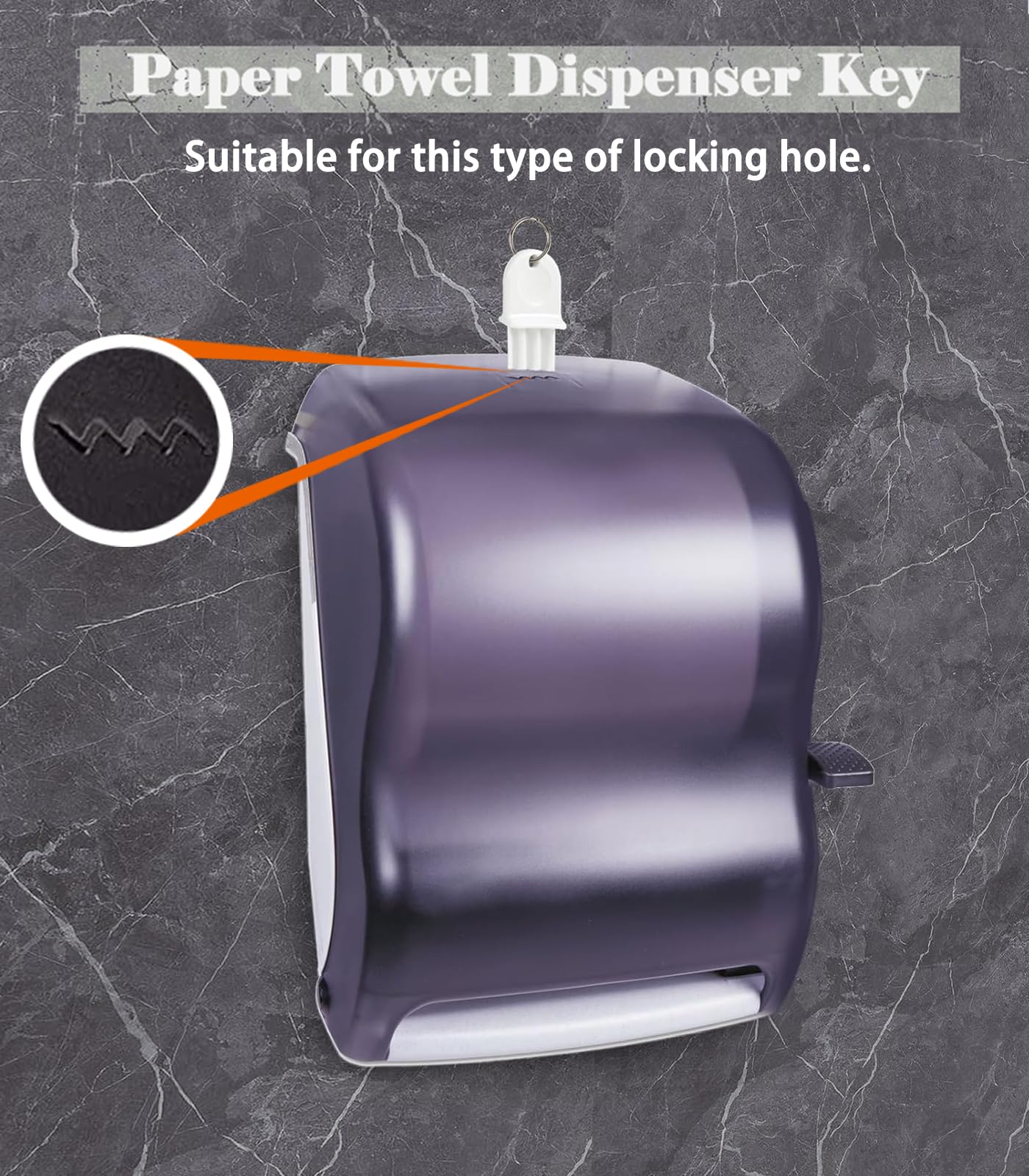• Q: What materials are the paper towel dispenser keys made from? A: The keys are made from hard plastic, ensuring durability and long-lasting performance.