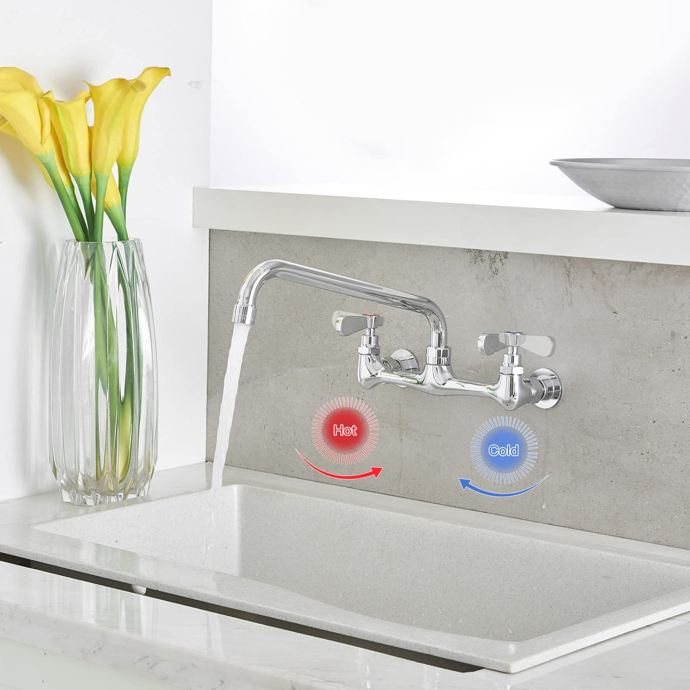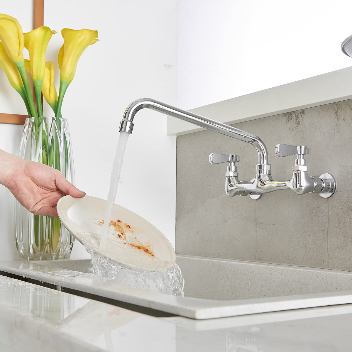Bwe Kitchen Faucet Wall Mount 2 Handles Commercial Sink Faucet With 16 Inch Swivel Spout Kitchen Faucets, Utility Laundry Faucet