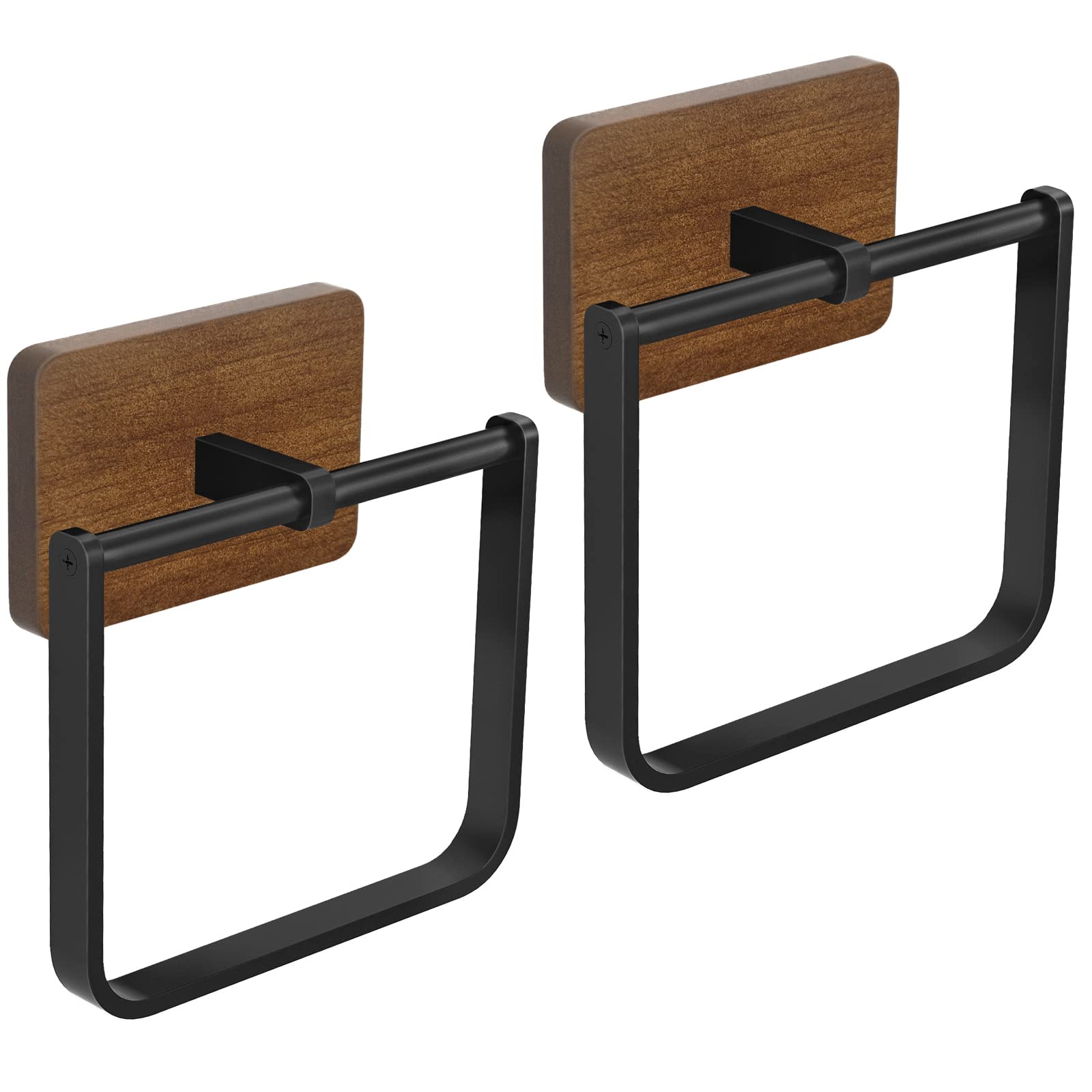 Doku 2Pack Square Towel Ring, Hand Towel Holder For Bathroom, Towel Rack Hanger For Kitchen Wall Mount Heavy Duty Storage, Black