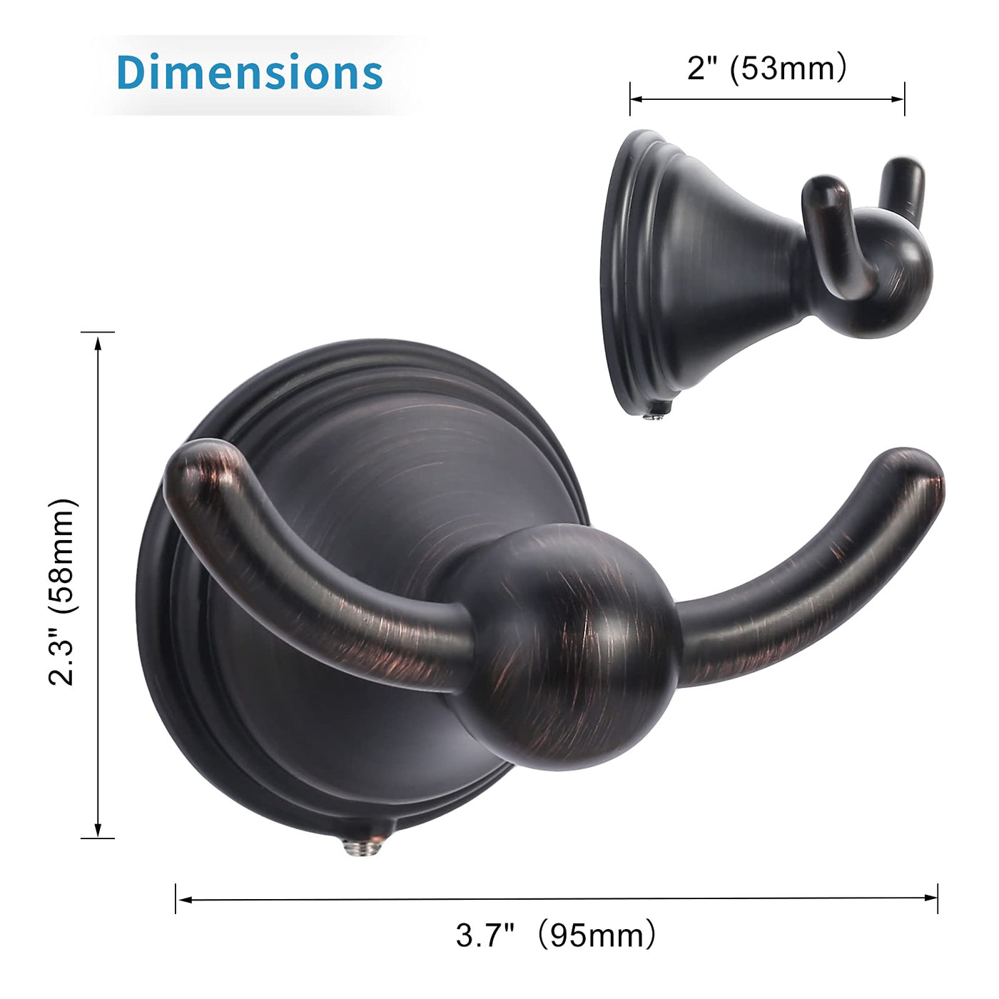 • Q: What material are the towel hooks made from? A: The towel hooks are made from high-quality zinc alloy with an oil rubbed bronze finish, ensuring durability and resistance to rust and fingerprints.