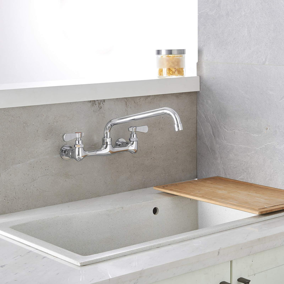 Kitchen Faucet Wall Mount With 10 Inch Swivel Spout 8 '' Center Commercial Sink 2-Handle Faucet Mixer Tap Polish Chrome Laundry