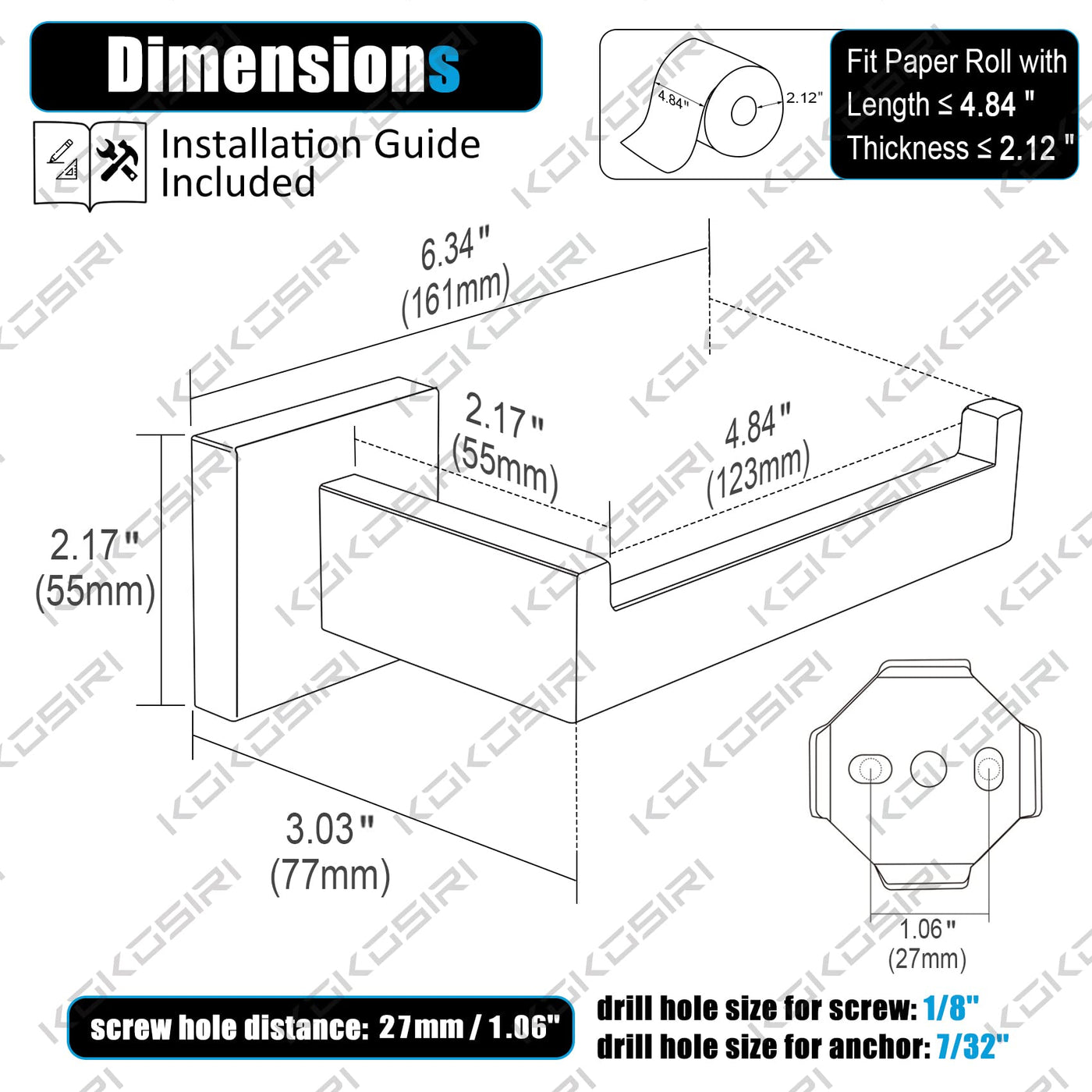 - Q: What are the dimensions of the KOKOSIRI Toilet Paper Holder? A: The dimensions of the KOKOSIRI Toilet Paper Holder are designed to accommodate standard toilet paper rolls, ensuring ease of use.
