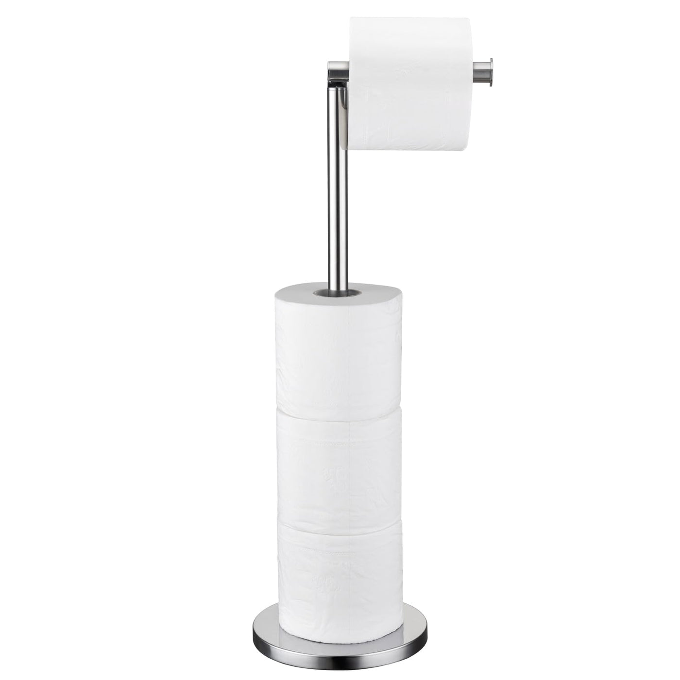 Welllink Toilet Paper Holder Stand, Floor Standing With Heavy Weighted Base - Holds 4 Rolls, Polished Chrome Bathroom Tissue Org