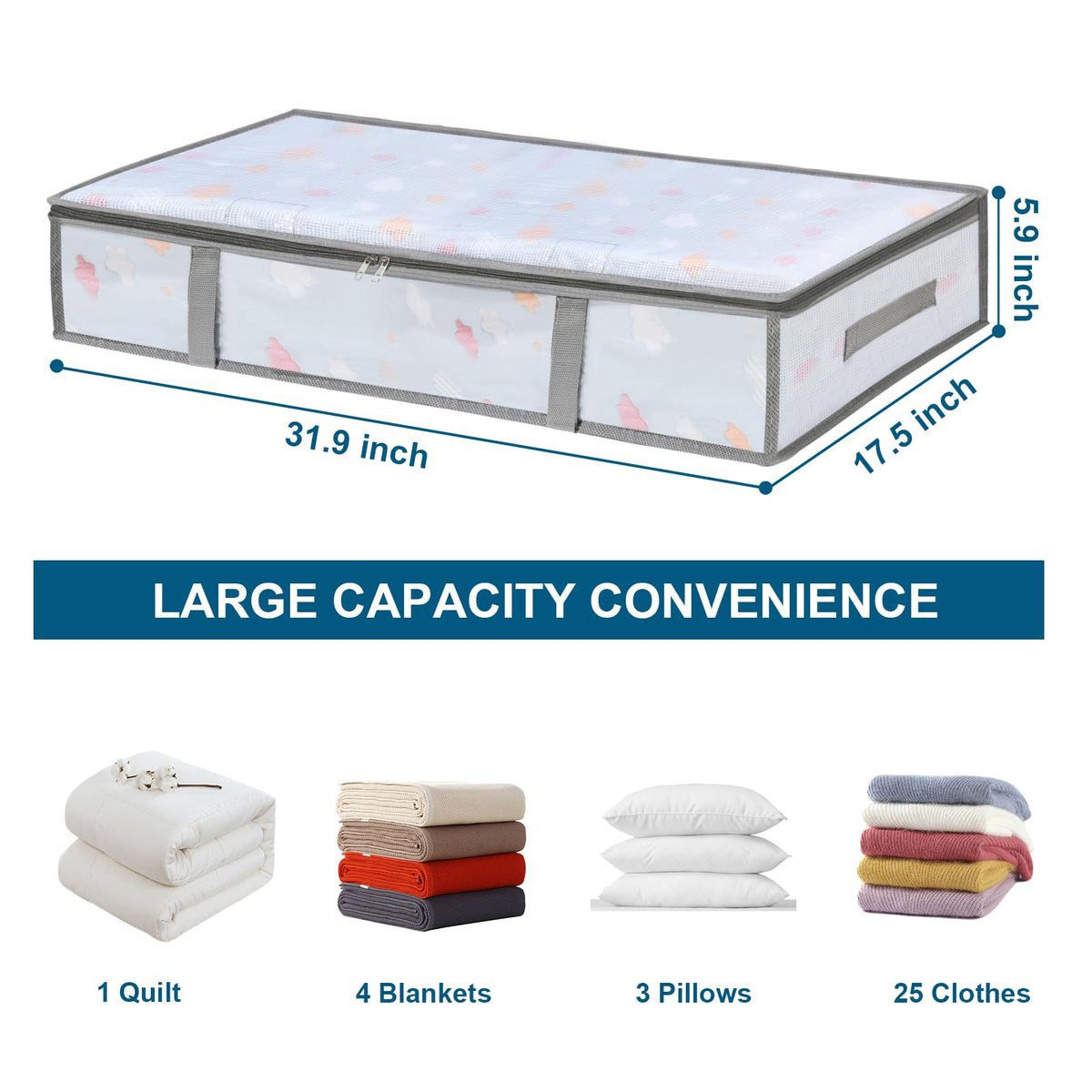 2 Pack Under Bed Storage Containers Bins, Humid-Proof Plastic Underbed Storage Bins, Clothes Storage and Organization Bags, Unde