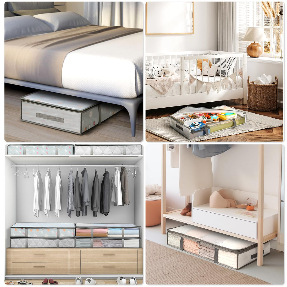 4 Packs Under Bed Storage Containers Bins, Humid-Proof Plastic Underbed Storage Bins, Closet Organizers and Clothes Storage Bags
