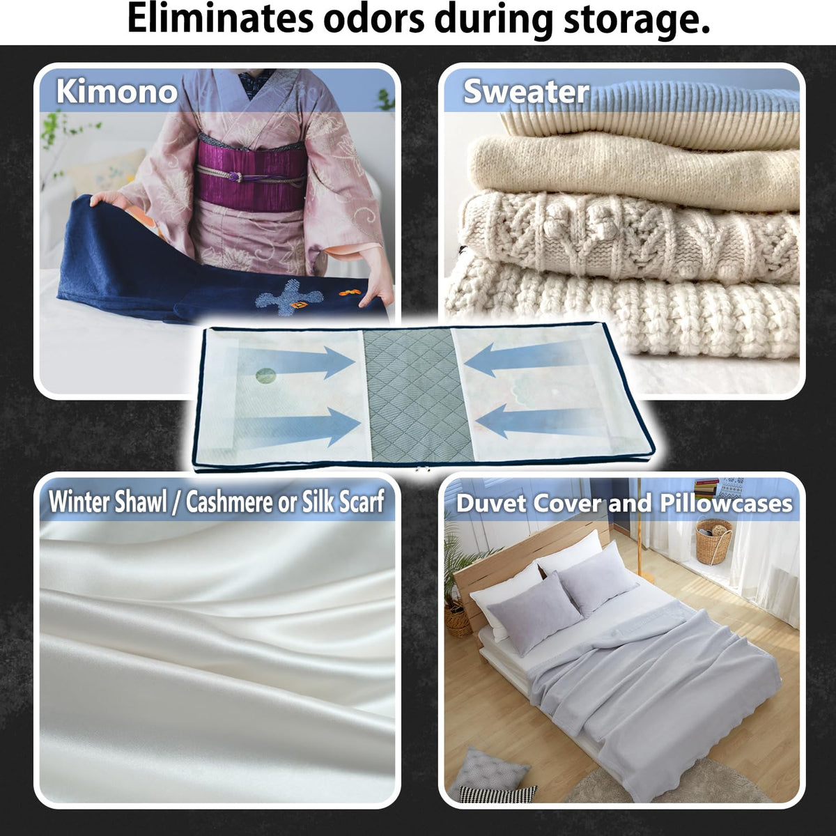 • Q: How does the activated carbon feature benefit my kimonos? A: The activated carbon helps preserve kimonos and yukatas by preventing moisture and odors from accumulating.