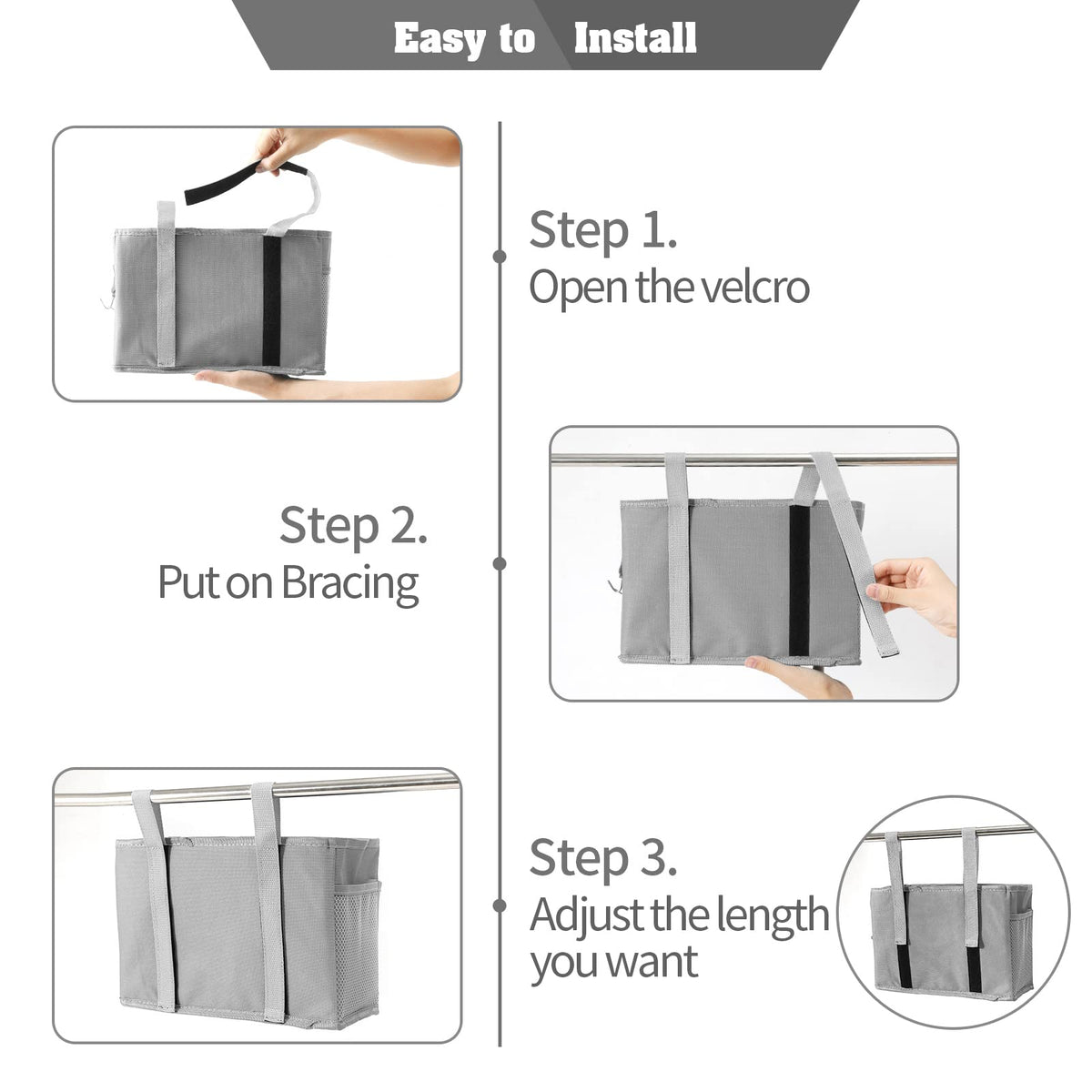 - Q: What types of beds can the organizer be used with? A: The organizer works well with various bed types, including top bunk beds, hospital beds, cribs, wheelchairs, and regular beds with rails.
