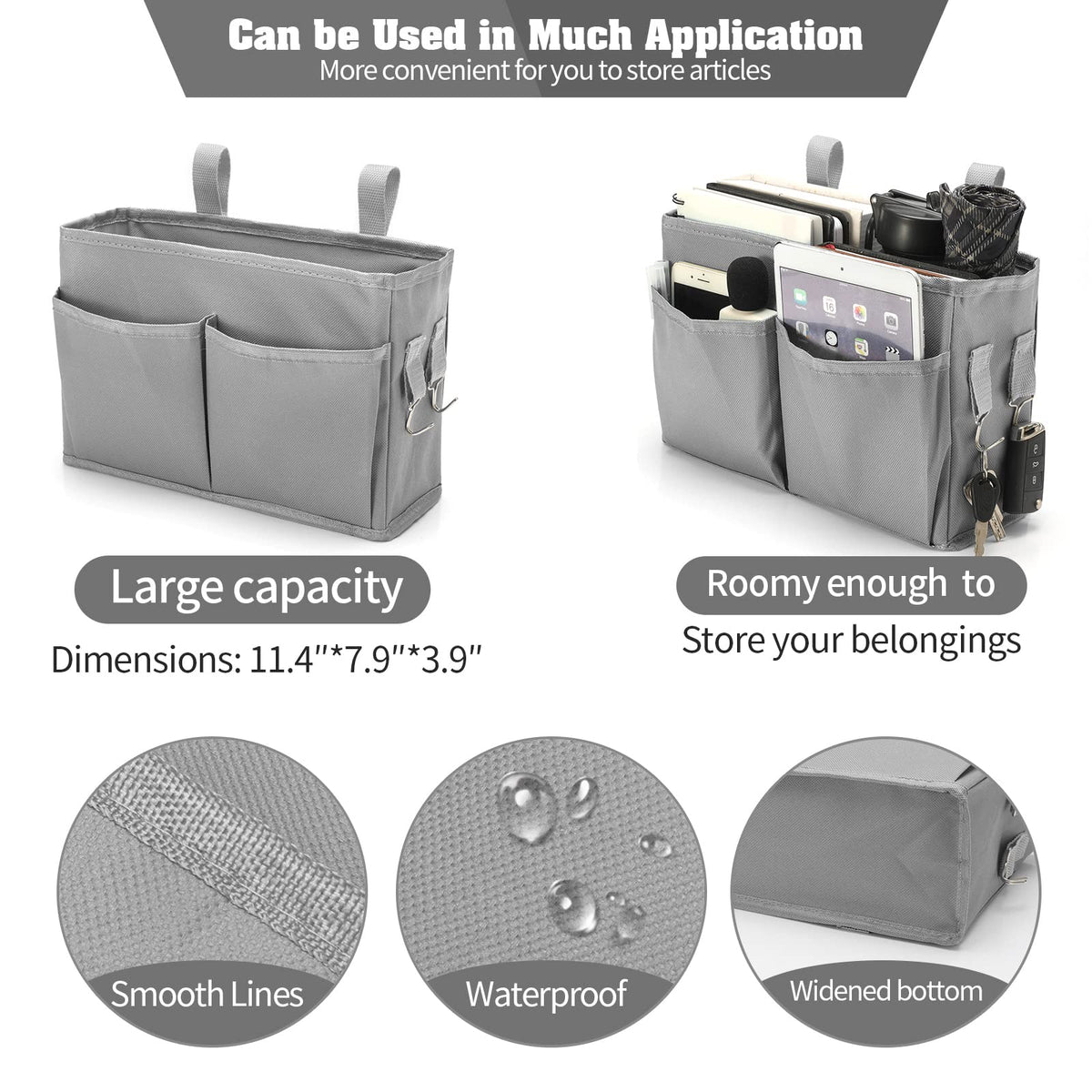 Bunk Bed Organizer, Bedside Caddy Hanging Bed Organizer Storage Bag with 4 Pockets and 2 Hooks, for College Dorm Rooms Bed, Hosp