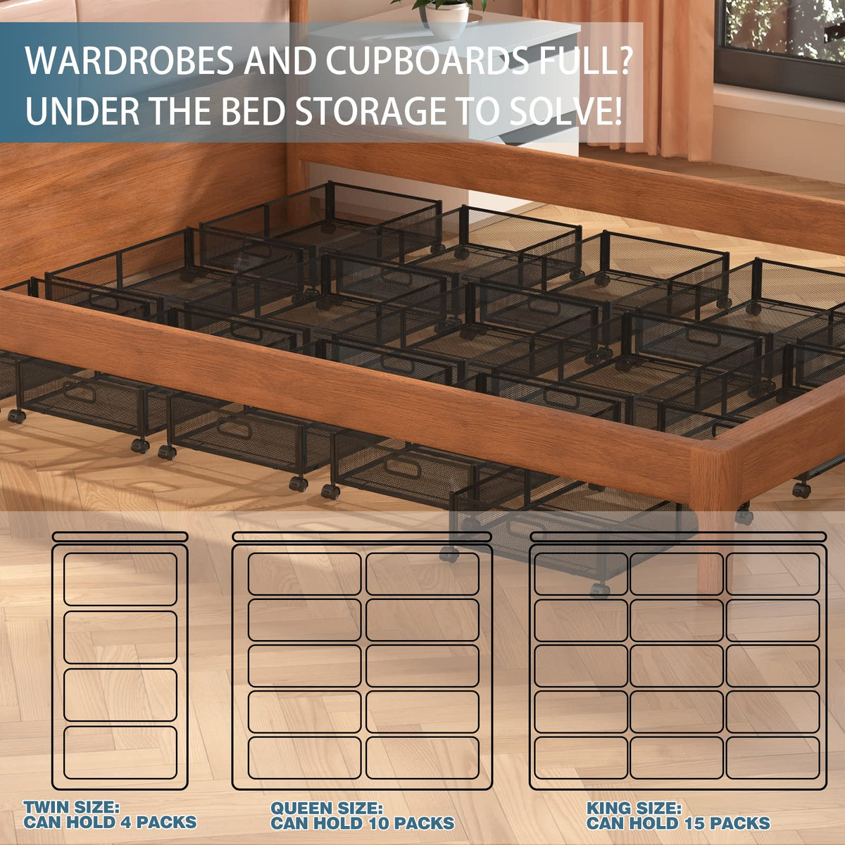 • Q: How many containers are included in a pack? A: Each pack contains four Under Bed Storage Containers, providing ample space for organizing clothes, blankets, or shoes.