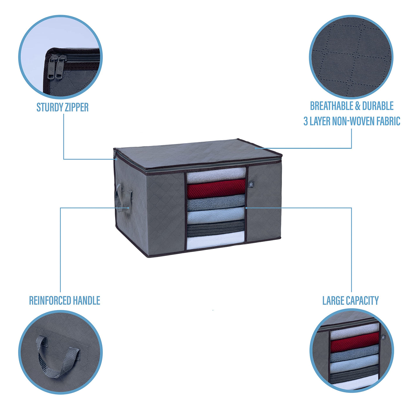 VENO 3 Pack Extra Large Clothes Storage Bag Organizer with Reinforced Handle Thick Fabric for Comforters, Blankets, Bedding, Fol