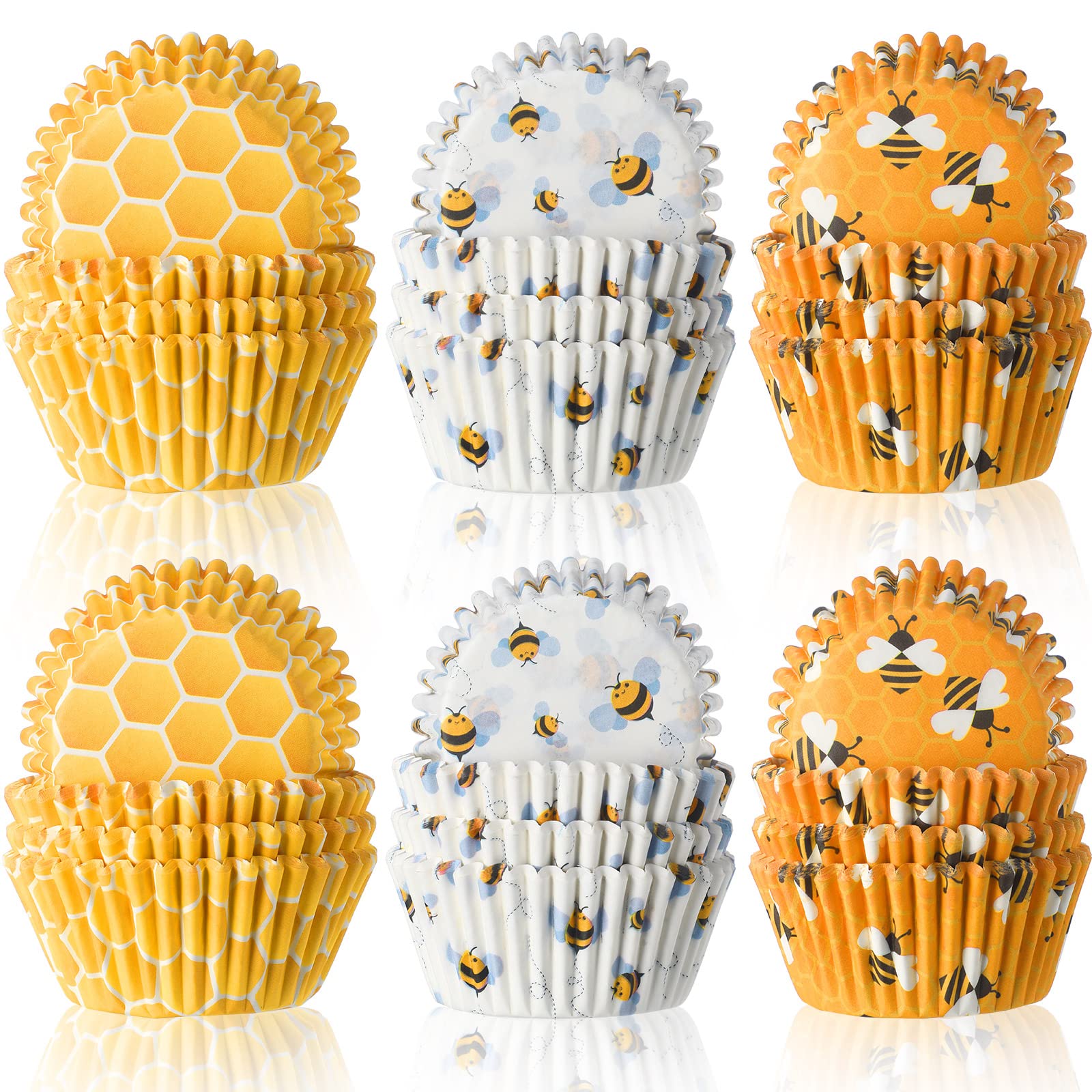 - Q: How many cupcake wrappers are included in the package? A: The package includes a total of 300 honey bee cupcake wrappers, with 100 pieces in each of the three different styles.
