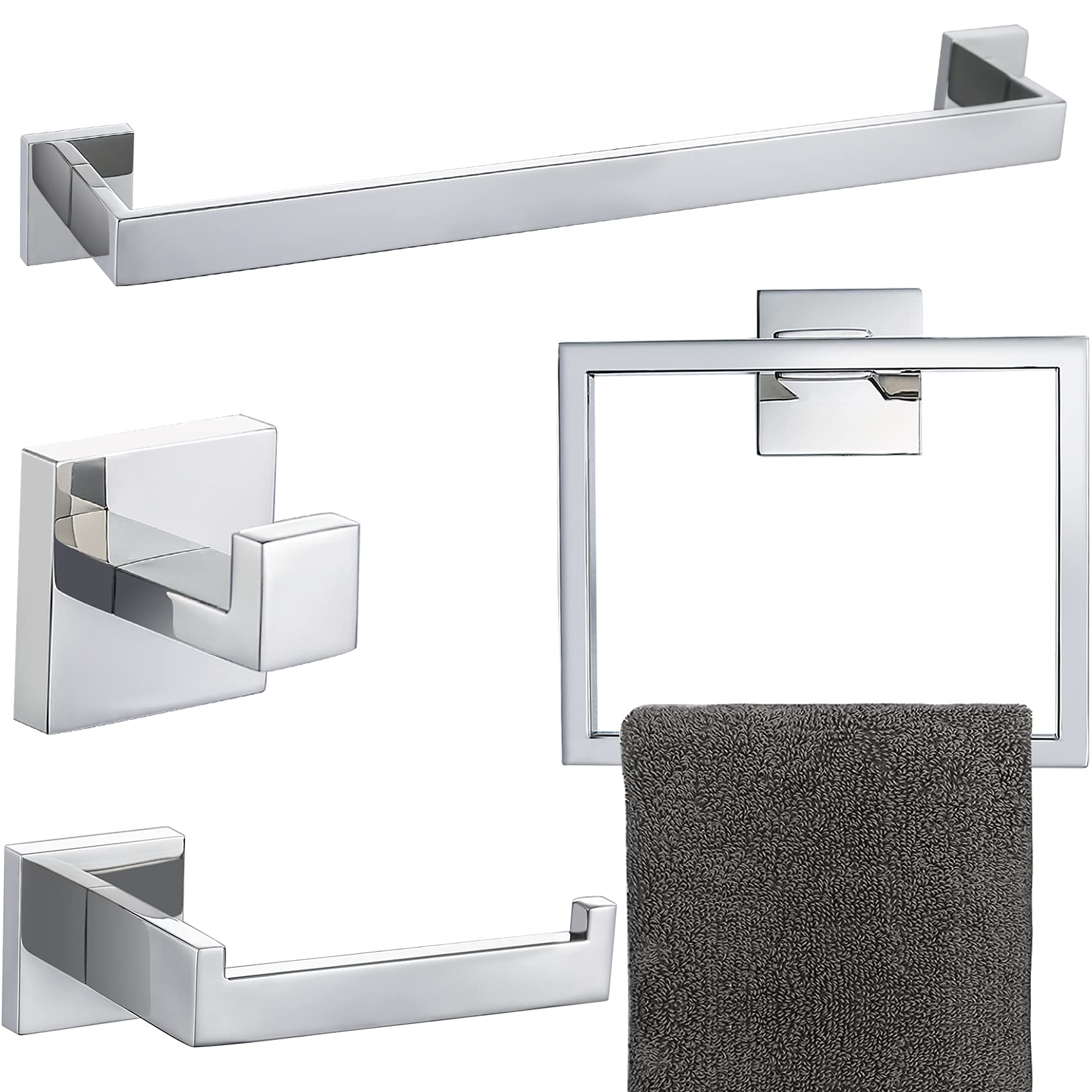4-Piece Bathroom Hardware Set Chrome Bath Towel Bar Holder Sets Wall Mounted Stainless Steel Bathroom Accessory Kit Polished Chrome 23.6 Inch