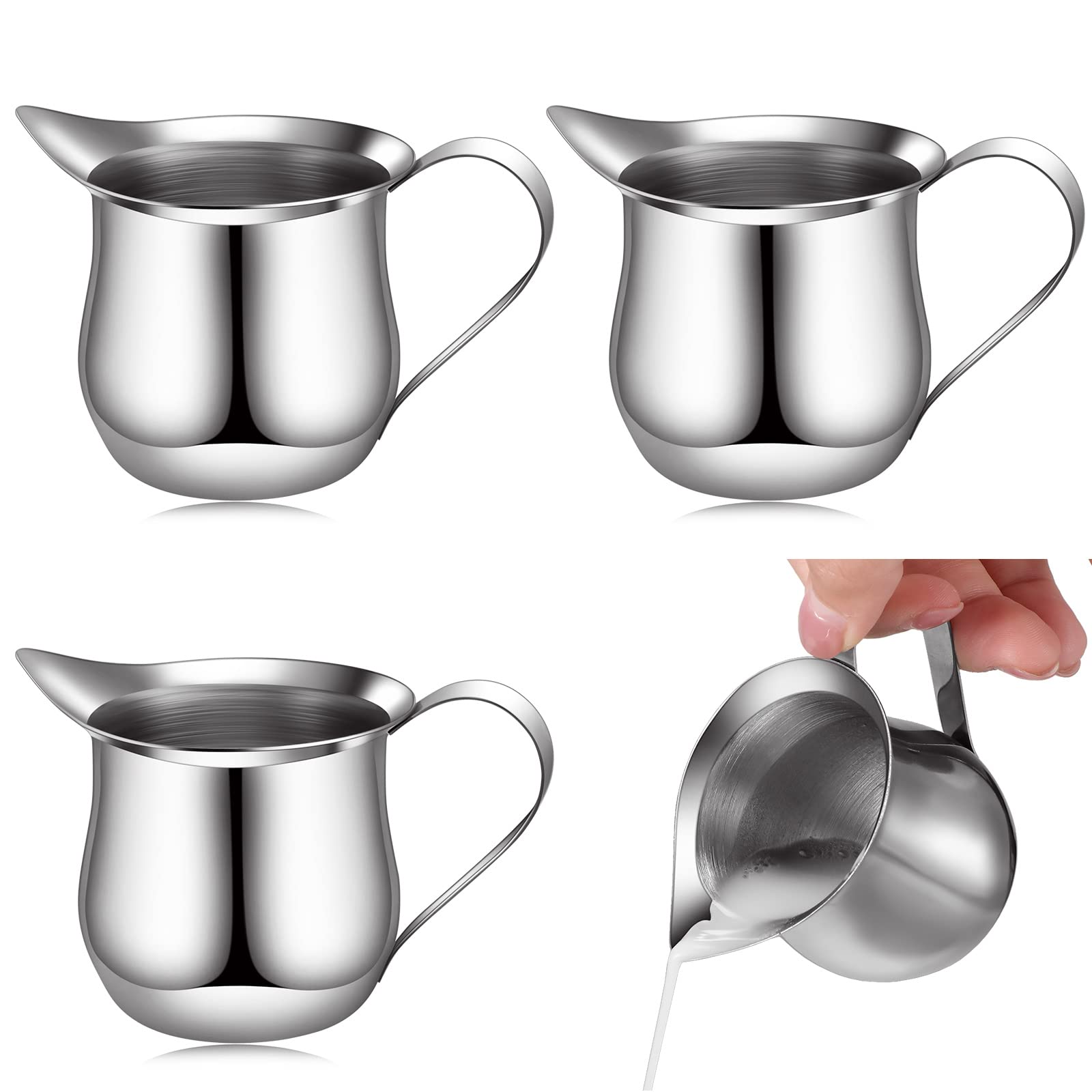 4 Pieces Creamer Pitcher Bell Shaped Creamer 3 Ounce Espresso Pouring Cup Stainless Steel Creamer Pitcher Mirror Finish Mini Sta
