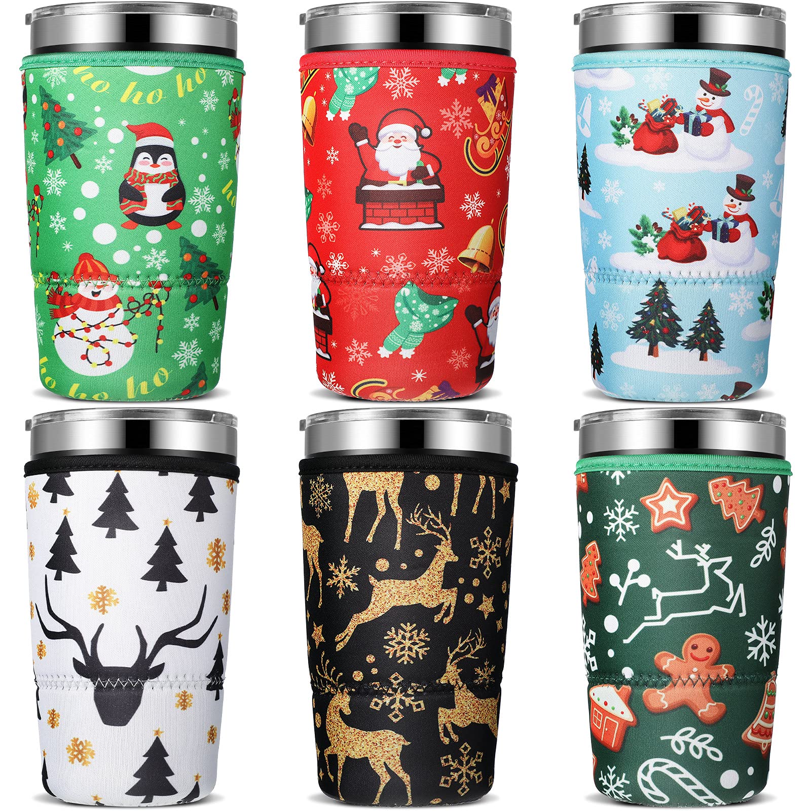 6 Pieces Christmas Coffee Sleeve Gingerbread Man Santa Coffee Cup Sleeves Neoprene Iced Coffee Sleeve Xmas Insulator Sleeve Cup