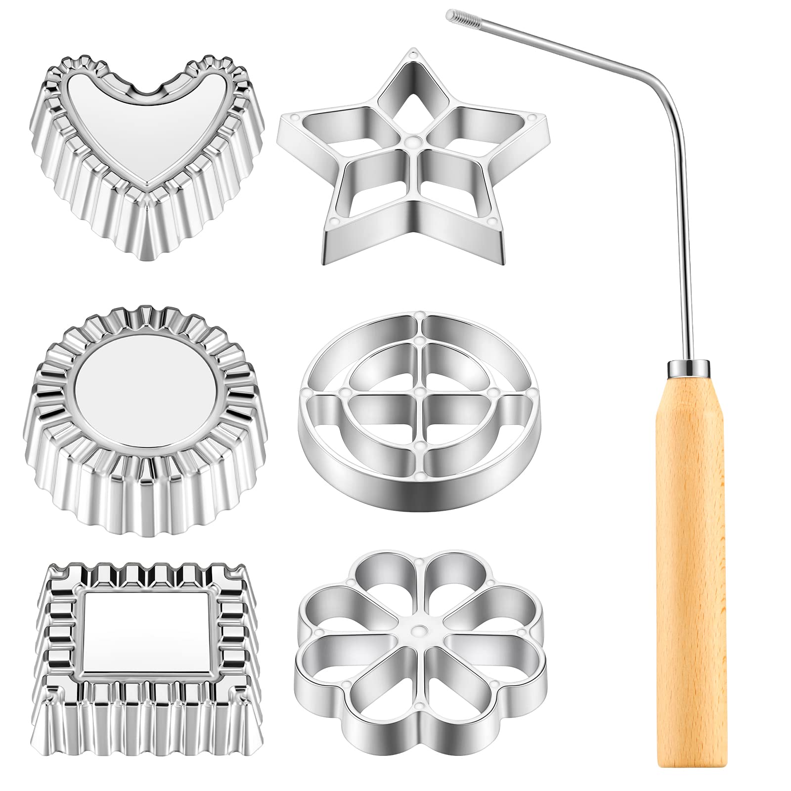 7 Pcs Achappam Mold Bunuelos Mold With Handle Rosette Iron Set Aluminum Rosette Maker Heart Star Circle Square Cookies Mold For