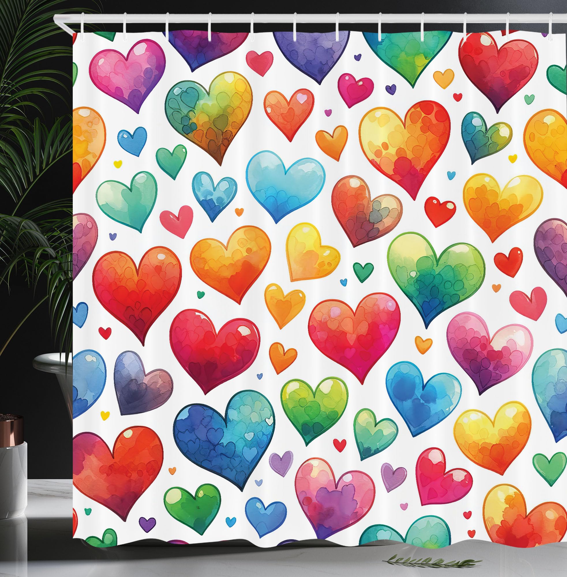 Ambesonne Colorful Shower Curtain, Retro Design Groovy Valentine'S Day Hearts Pattern On Plain Back 90S Feeling, Cloth Fabric Ba