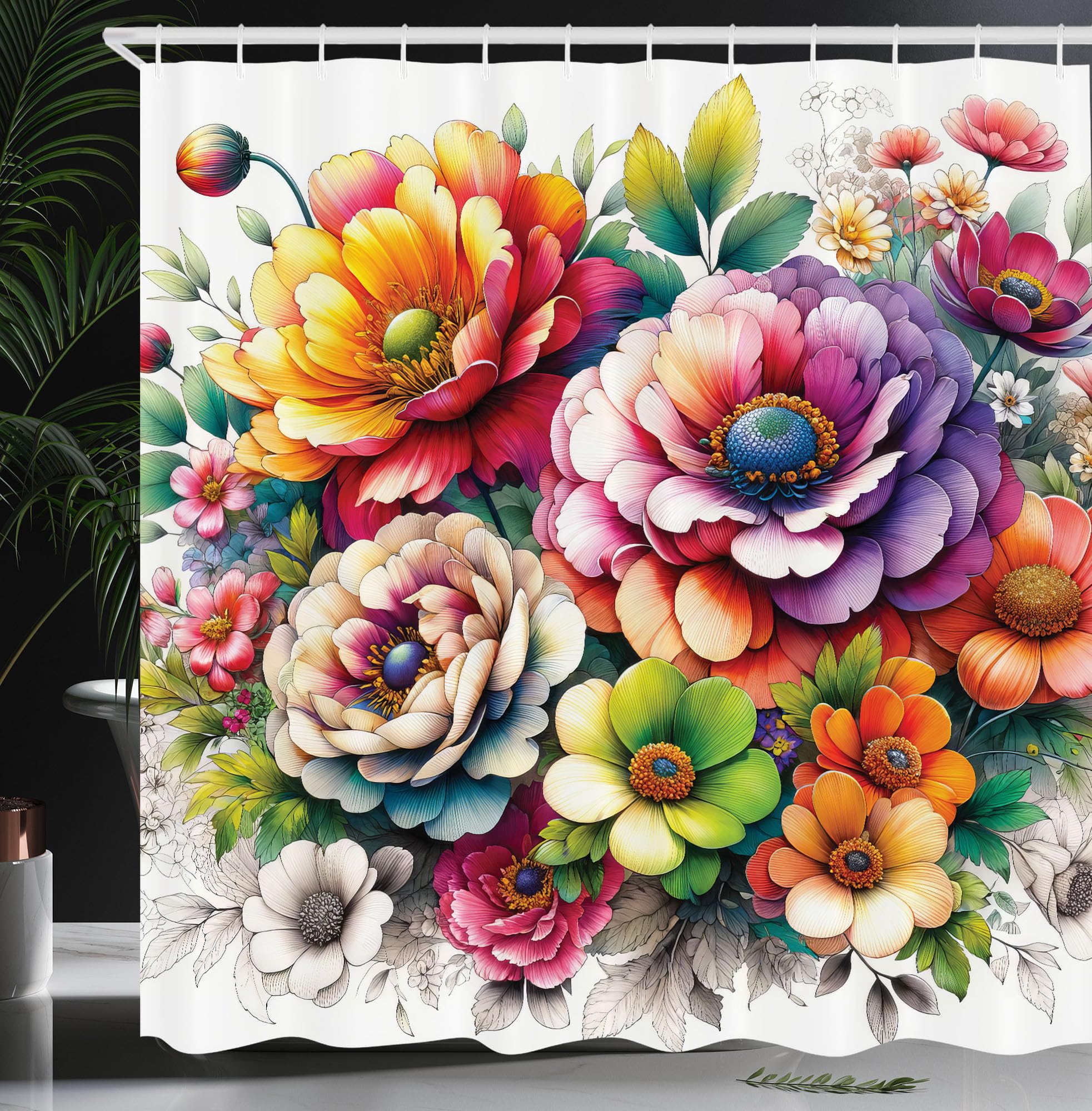 Ambesonne Colorful Shower Curtain, Springtime Huddle Of Peony Flowers With Jungle Boho Manners Chill Vibe, Cloth Fabric Bathroom