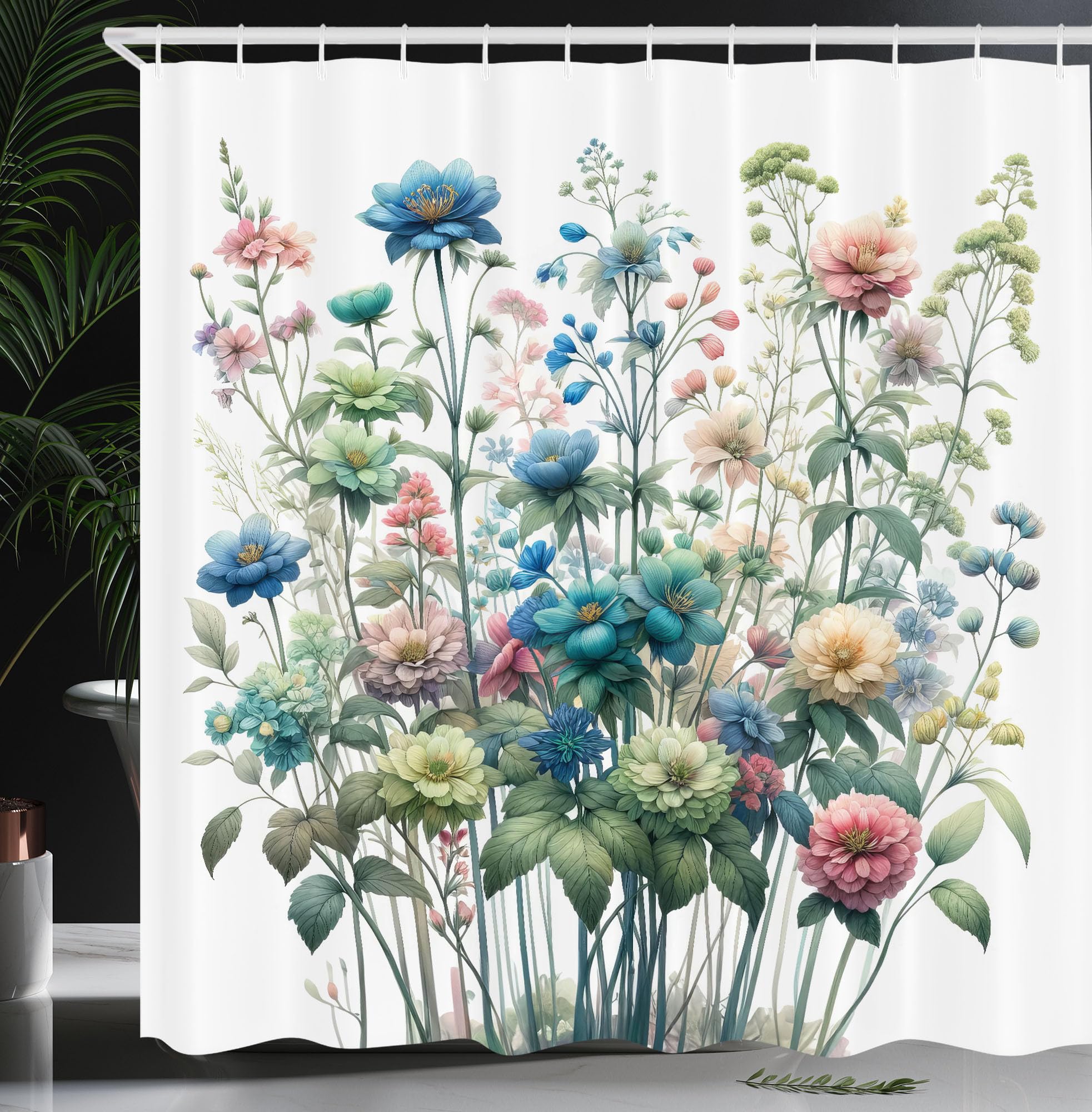 - Q: What are the dimensions of the Ambesonne Floral Shower Curtain? A: The Ambesonne Floral Shower Curtain measures 69 inches wide by 70 inches long.