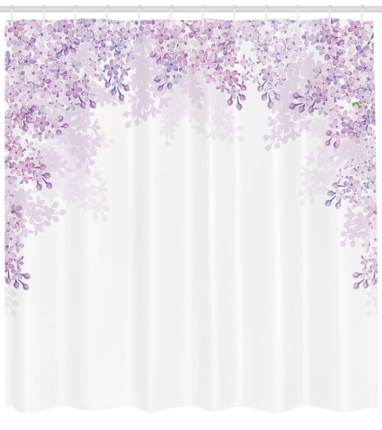 Ambesonne Flower Shower Curtain, Framing Lilac Flowers In Blossom Vernal Season Soothing Color Shades, Cloth Fabric Bathroom Dec