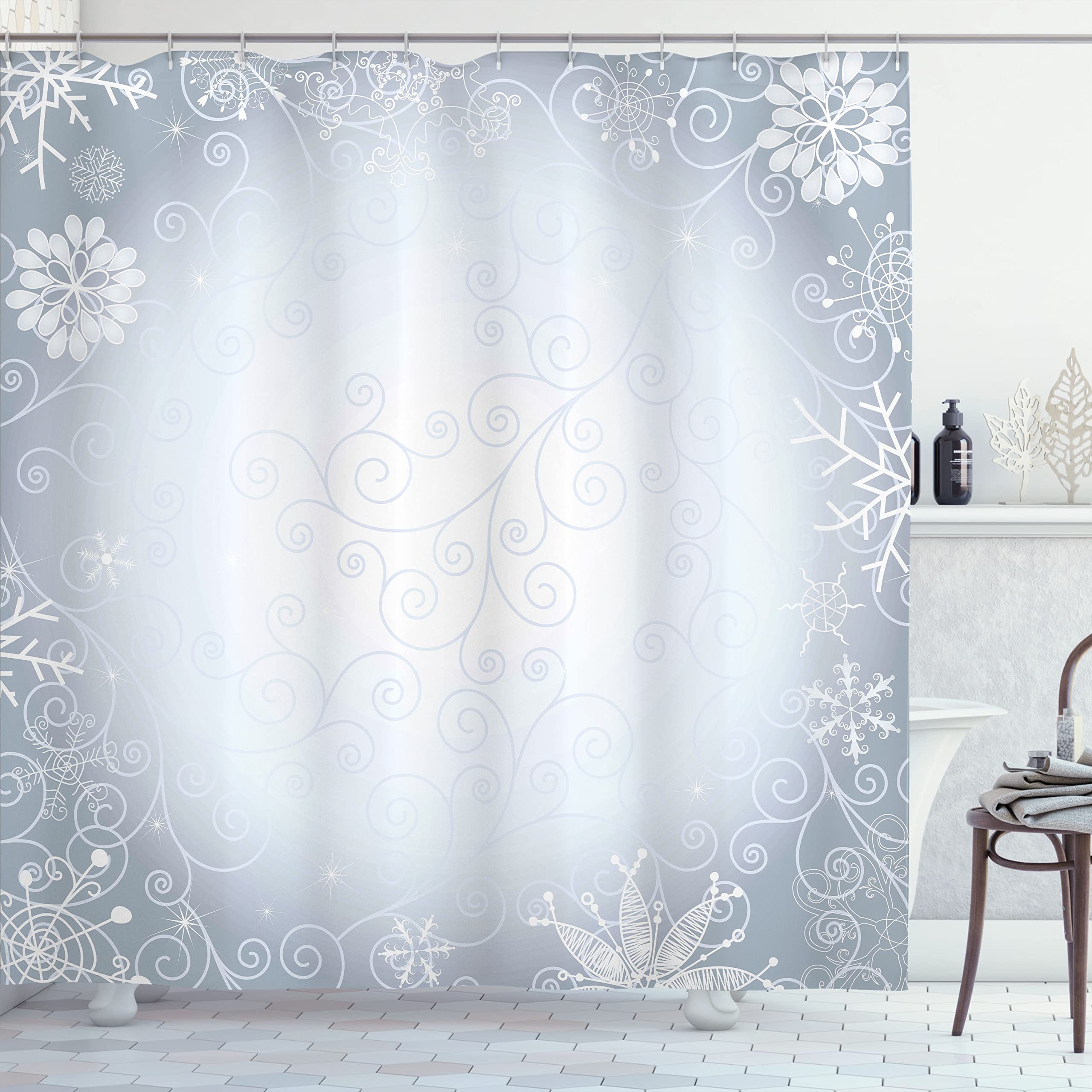 Ambesonne Ombre Shower Curtain, Christmas Theme Gentle Frame With Curls Swirls Snowflakes Lace Inspired Motif, Cloth Fabric Bath