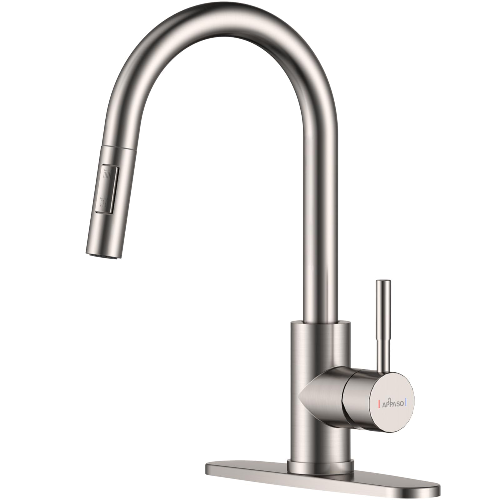 Appaso Kitchen Faucet With Pull Down Sprayer Brushed Nickel, Single-Handle High Arc Swan-Neck Modern Kitchen Sink Faucet With Op