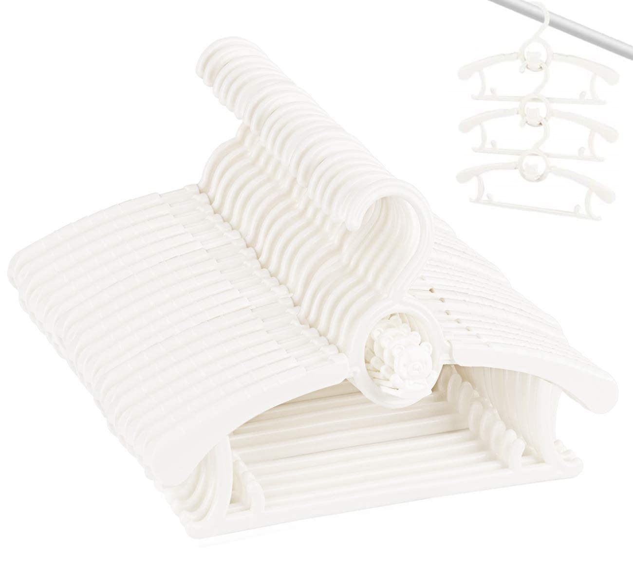 Baby Hangers for Closet 20pcs HGYZE White Kids Clothes Hanger Plastic 11-14'' Adjustable Bulk Perchas for Newborn Non-Slip Children Outfit Bear Hanger for Girl Boy Toddler Infant Nursery Clothing
