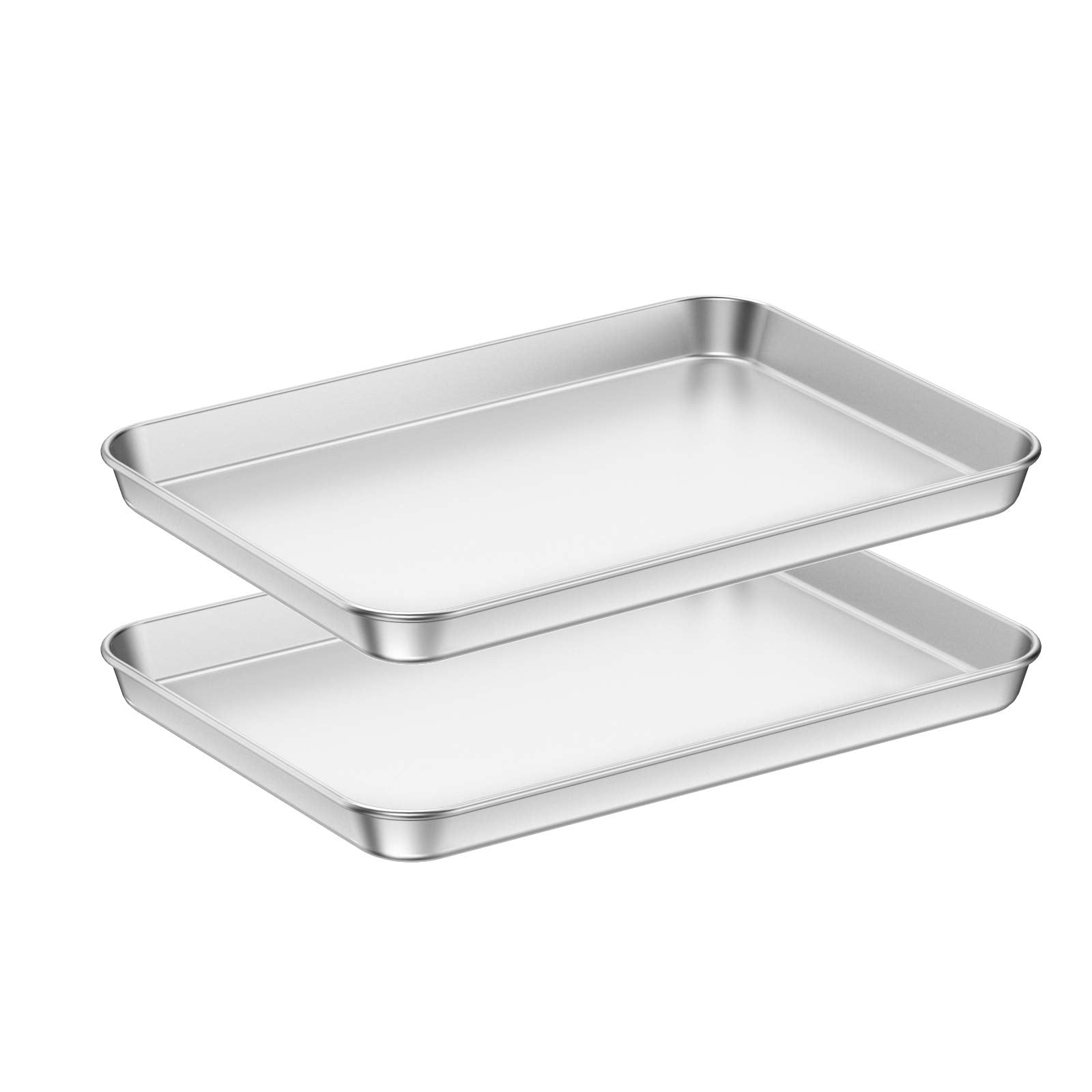 Baking Sheets 2 Pieces, Bastwe Cookie Sheets Set Stainless Steel Baking Pans Toaster Oven Tray Pans, Rectangle Size 12 A 10 A 1