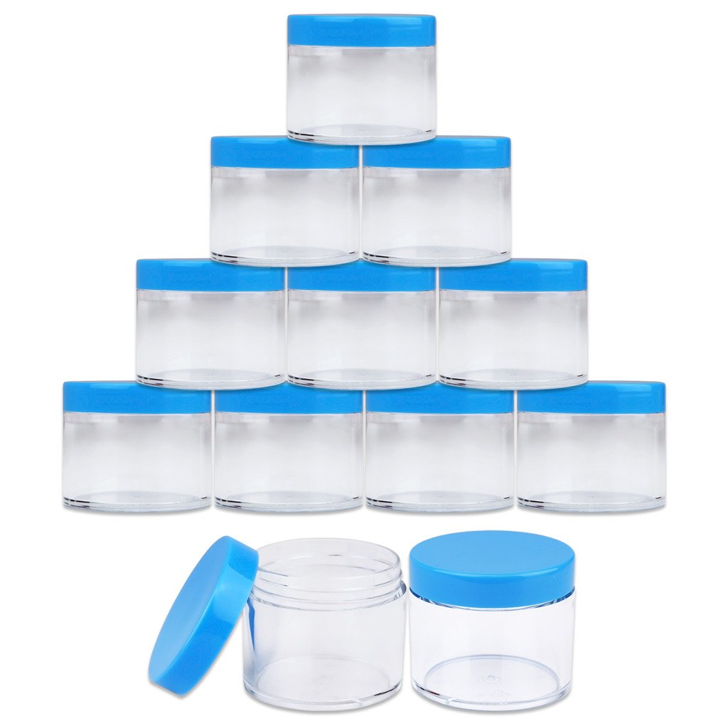Beauticom 60 Grams60 Ml (2 Oz) Round Clear Leak Proof Plastic Container Jars With Blue Lids For Travel Storage Makeup Cosmetic L