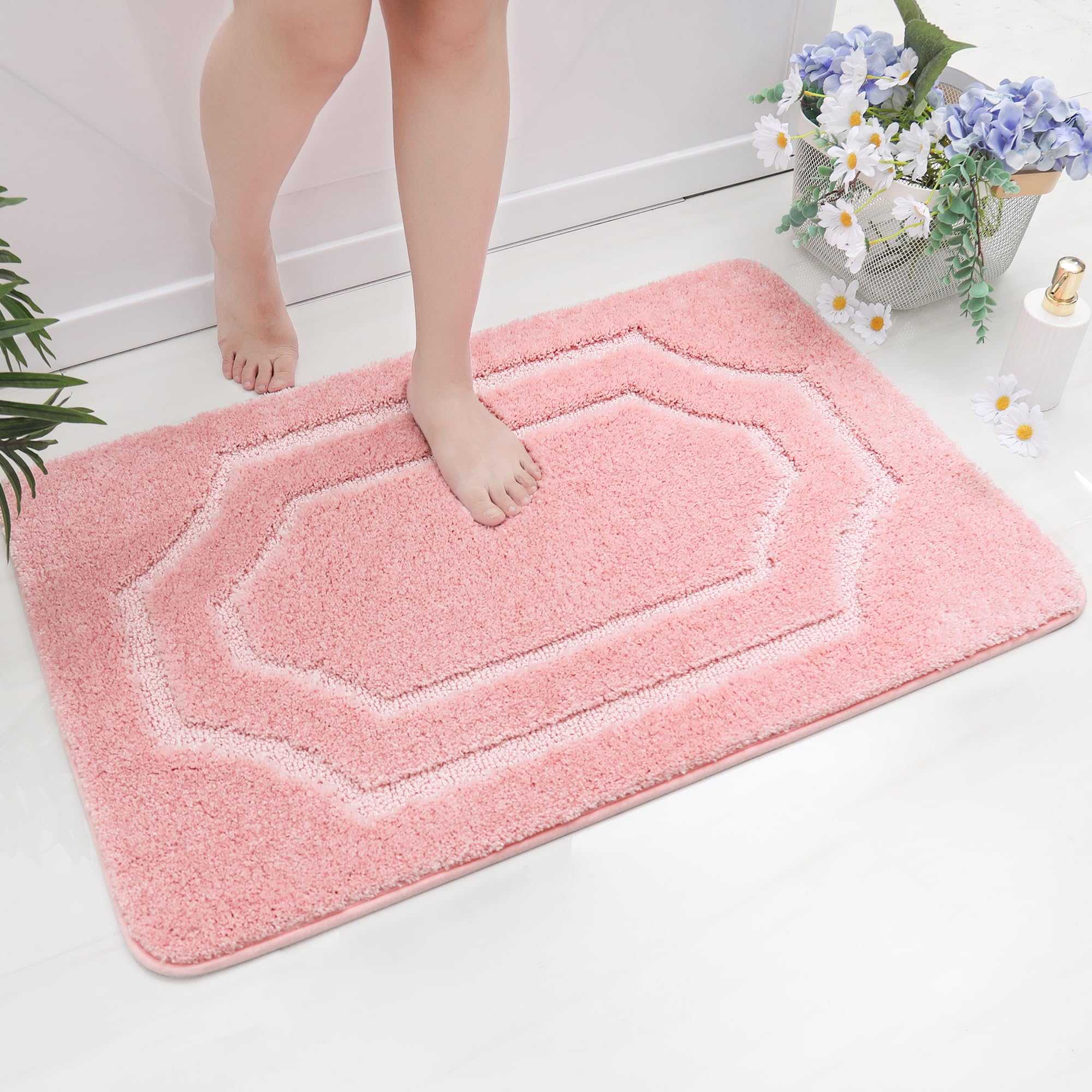 Beqhause Bathroom-Rugs-Non-Slip-Bath-Mats For Bathroom Soft And Absorbent Polyester Microfiber Pink Bath Mat Machine Washable Sh