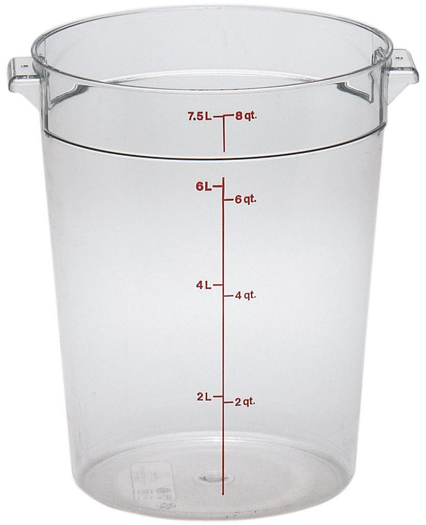 - Q: What is the capacity of the Cambro RFSCW8135 food storage container? A: The Cambro RFSCW8135 food storage container has a capacity of 8 quarts.