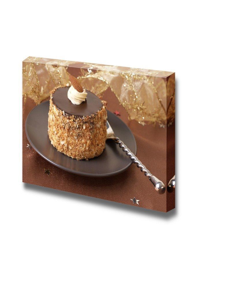 Canvas Prints Wall Art - Miniature Chocolate Meringue Cake With Cream And Almonds | Modern Wall Decor/Home Art Stretched Gallery