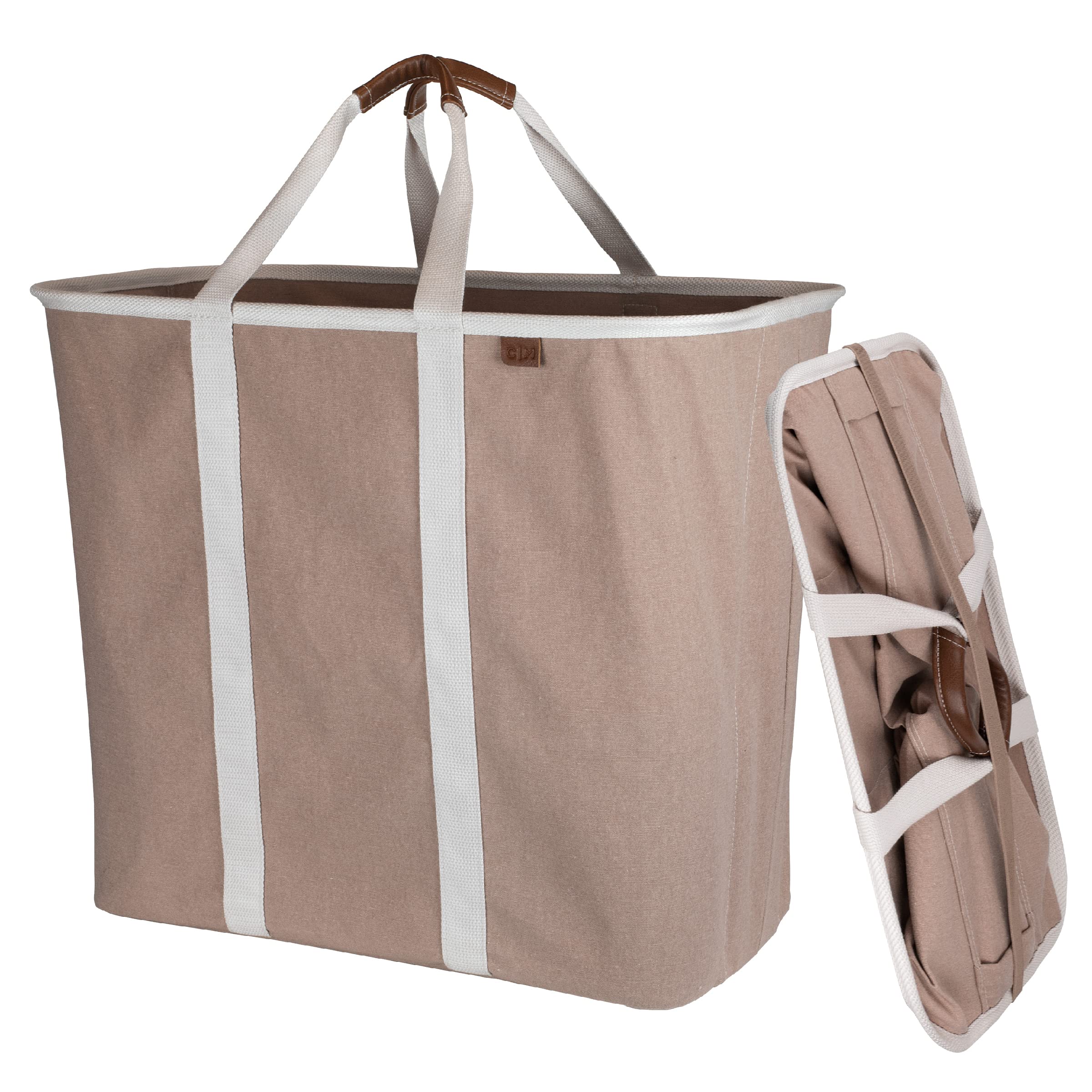 CleverMade Collapsible Laundry Basket Premium Large Foldable Clothes Hamper Laundry Tote Carry All Bin XL Pop-Up Caddy with Handles 2 Pack Mocha
