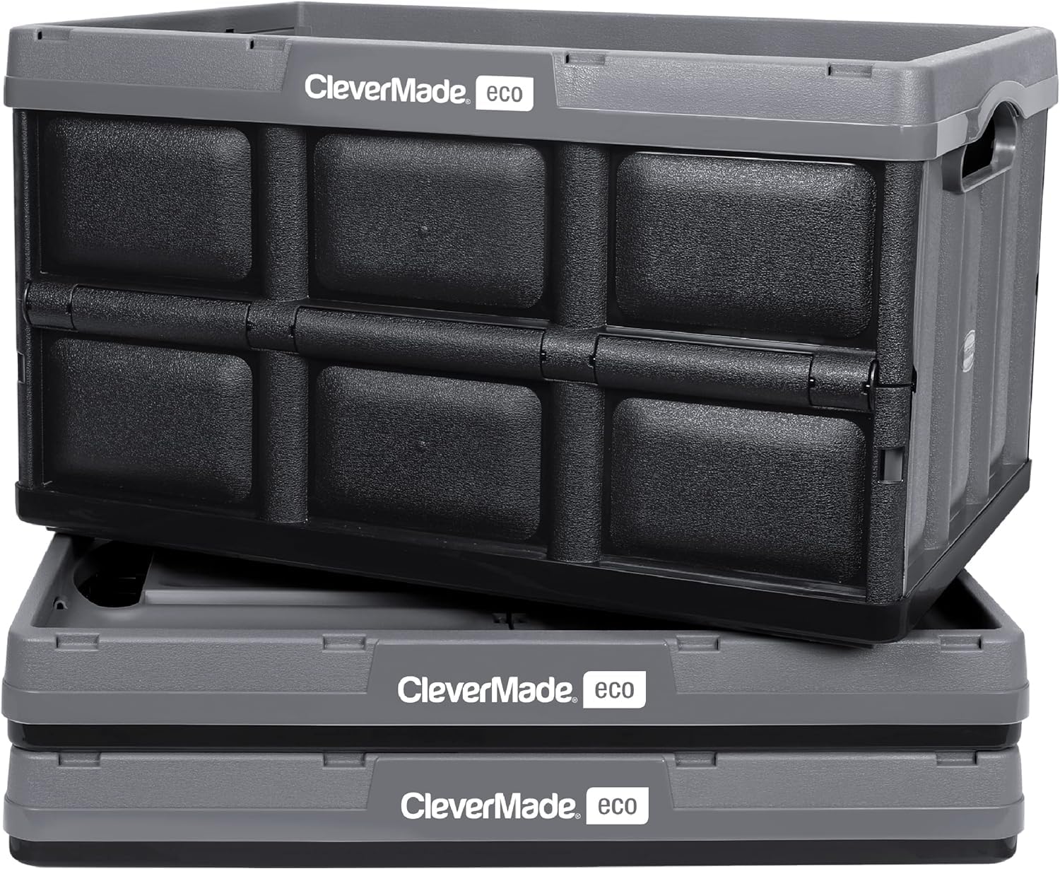 Clevermade Collapsible Storage Bin, Stone, 3Pk - 62L (16 Gal) Stackable Storage Containers, Holds 100Lbs Per Bin - Plastic Stora