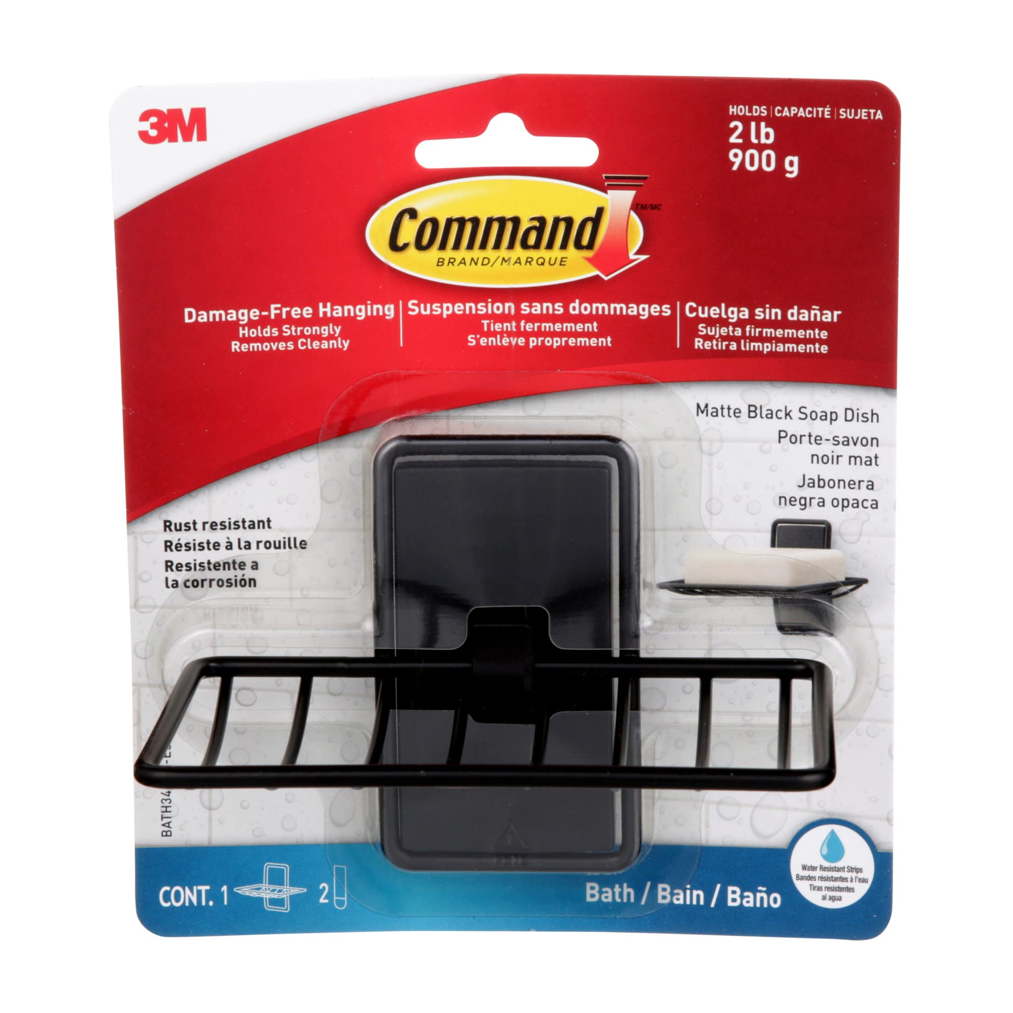 - Q: What is included in the package of the Command Soap Dish? A: One package includes one Matte Black soap dish and two water-resistant Command Strips.