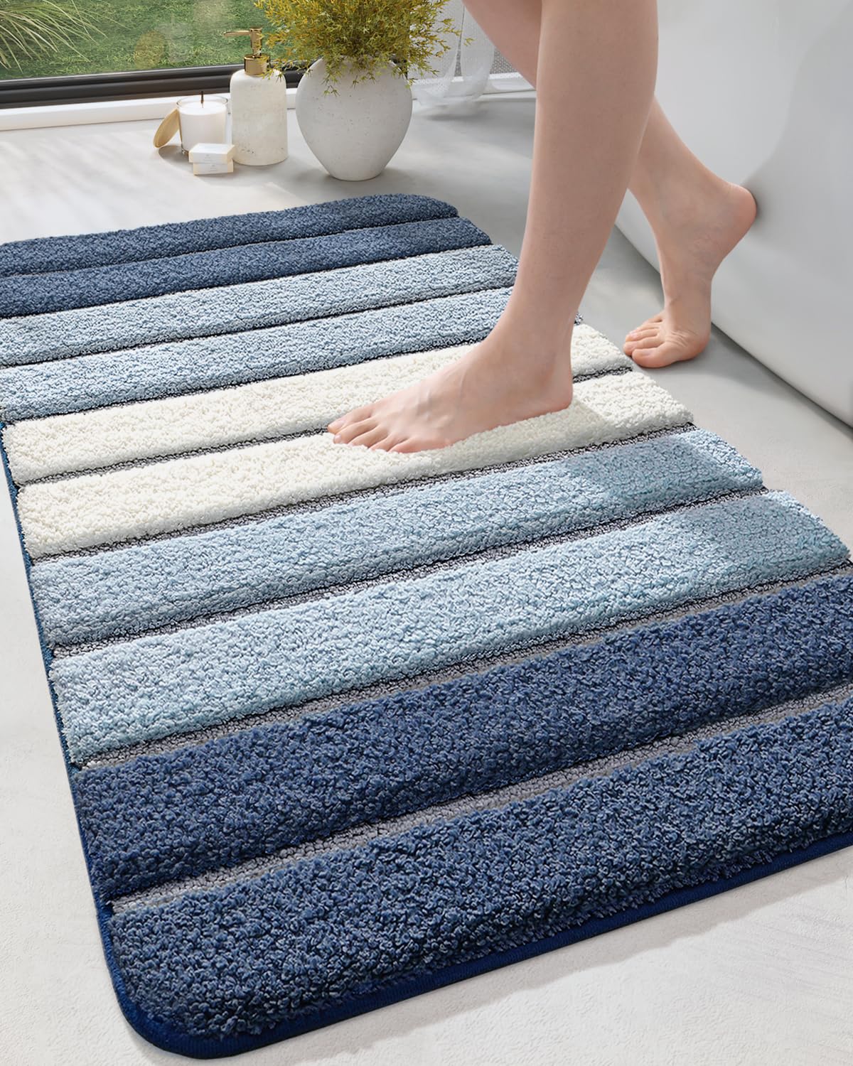 Dexi Bath Mat Bathroom Rug Absorbent Non-Slip Washable Shower Floor Mats Small Carpet 24''X43'', Blue