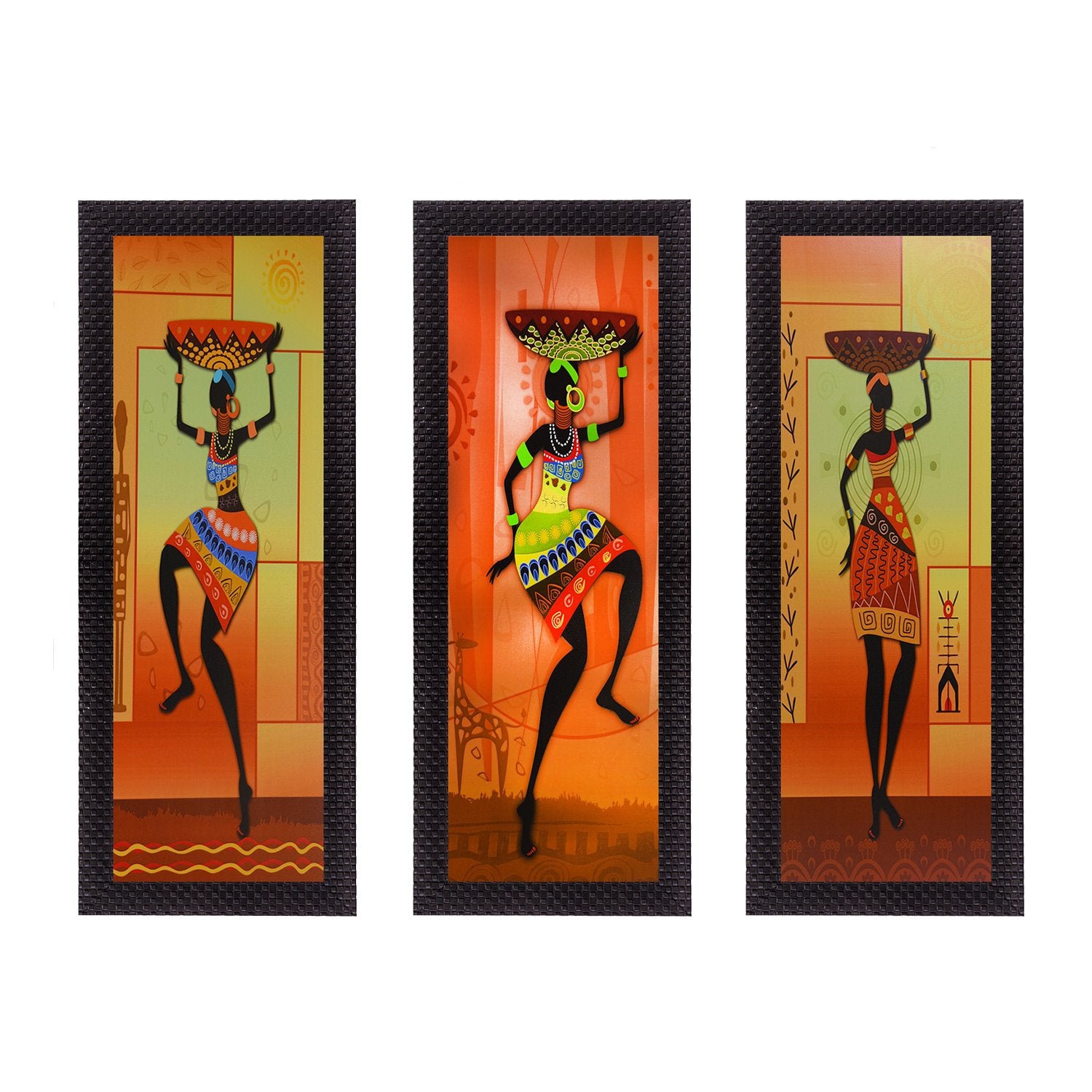 Ecraftindia Tribal Ladies Uv Art Painting (Synthetic Wood, 53 Cm X 41 Cm, Set Of 3, Satin Matt Texture, C3Fpb2214)