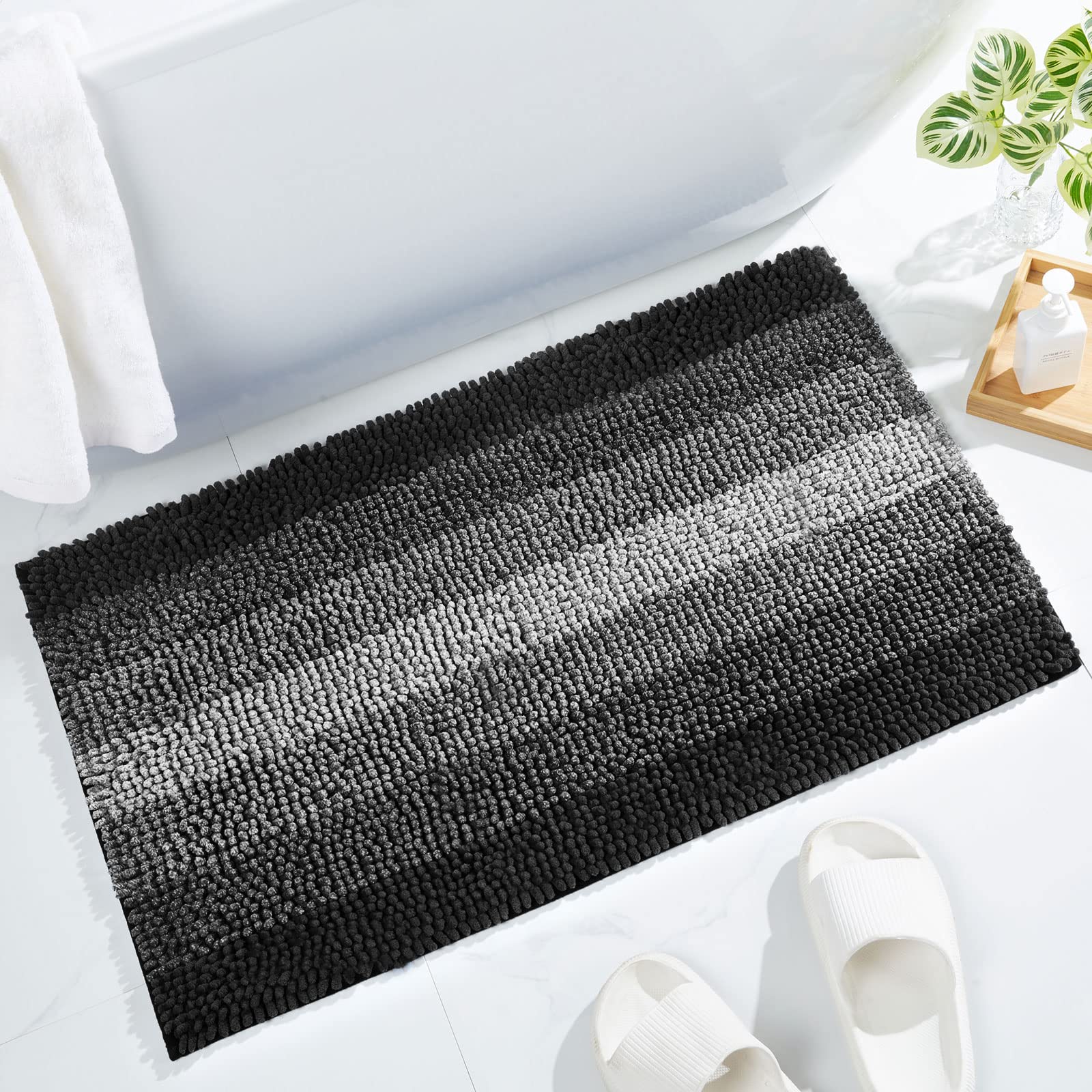 Gibelle Black Bathroom Rugs Luxury Chenille Bath Mat Small Non Slip Shower Rug and Bath Room Floor Mats Machine Washable Quick Dry Bathmat Soft Cozy Plush Rug for Tub 20'' x 32''