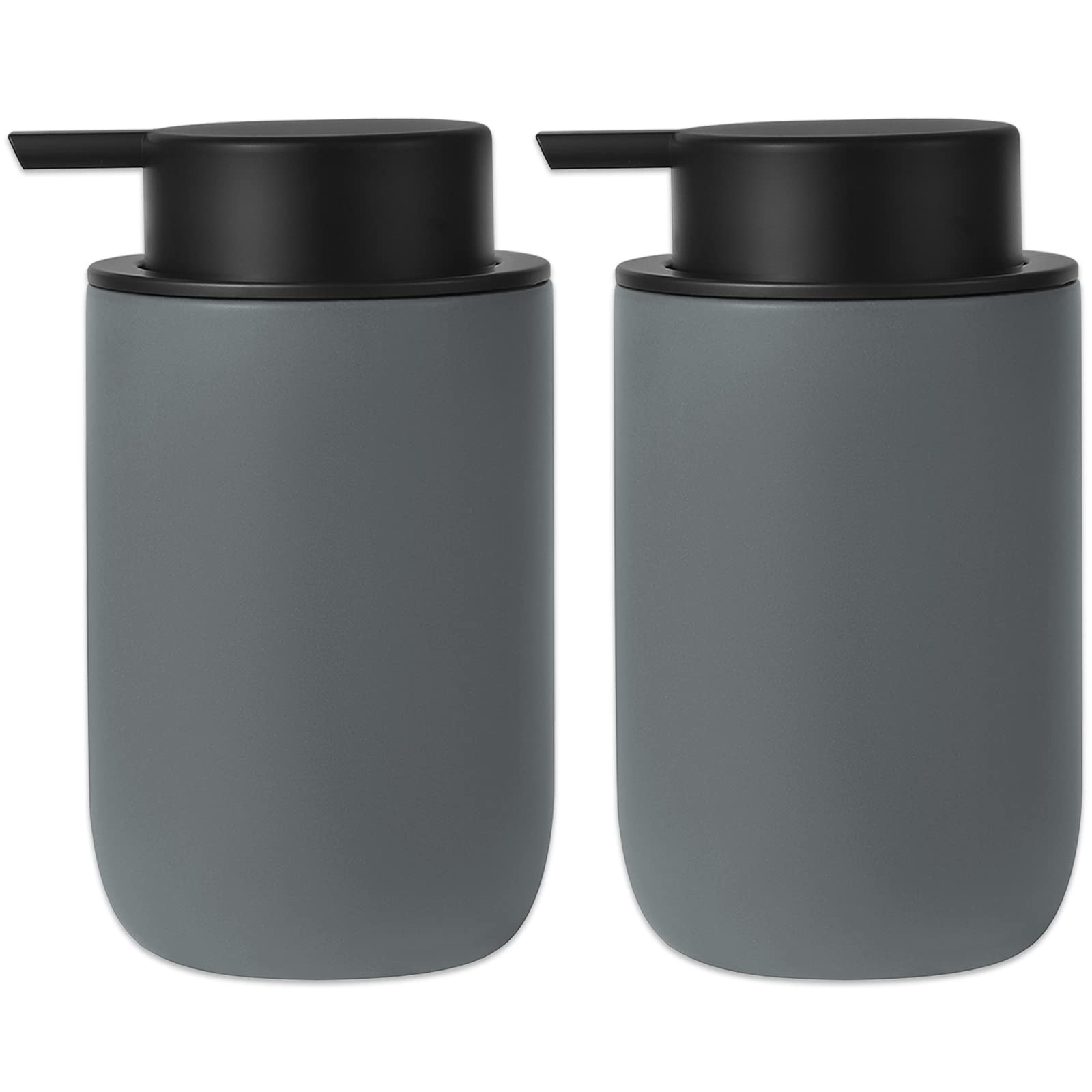 Hand Soap Dispenser for Bathroom Decro Matte Grey Ceramic Liquid Pump Bottles Refillable Dish Dispenser for Kitchen Farmhouse Colleage Dorm 2 Pack