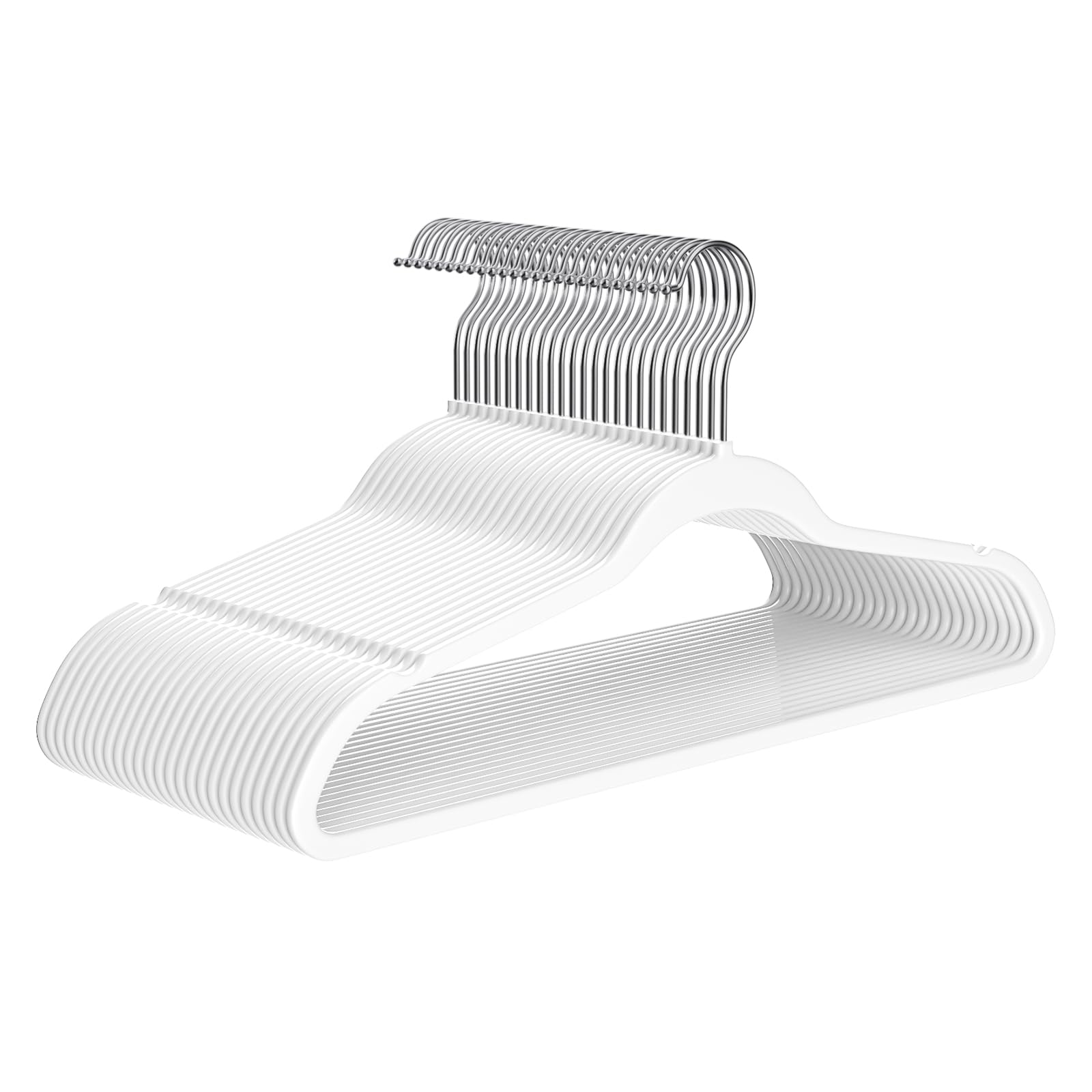 Hangers 50 Pack - Non-Velvet White Plastic Hangers For Clothes -Heavy Duty Slim Coat Hanger -Space-Saving Closet Hangers With Ch
