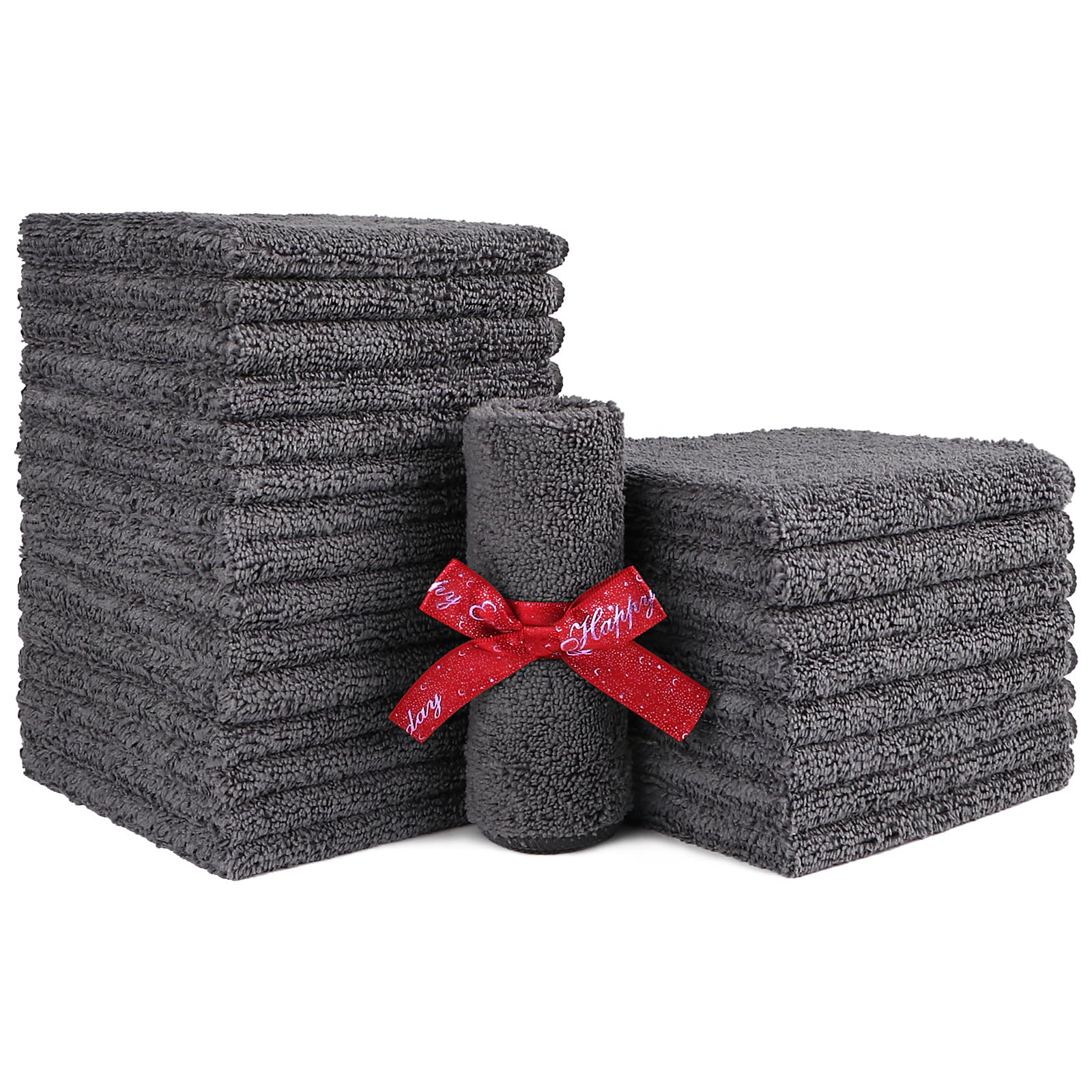 HOMEXCEL Microfiber Washcloths 24 Pack, Highly Absorbent and Soft Face Towel, Multi-Purpose Grey Wash Cloths for Bathroom, Hotel