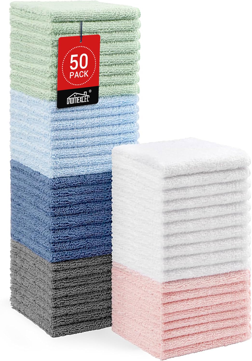 Homexcel Microfiber Washcloths 50 Pack, Highly Absorbent And Soft Face Towel, Multi-Purpose Wash Cloths For Bathroom, Hotel, Spa