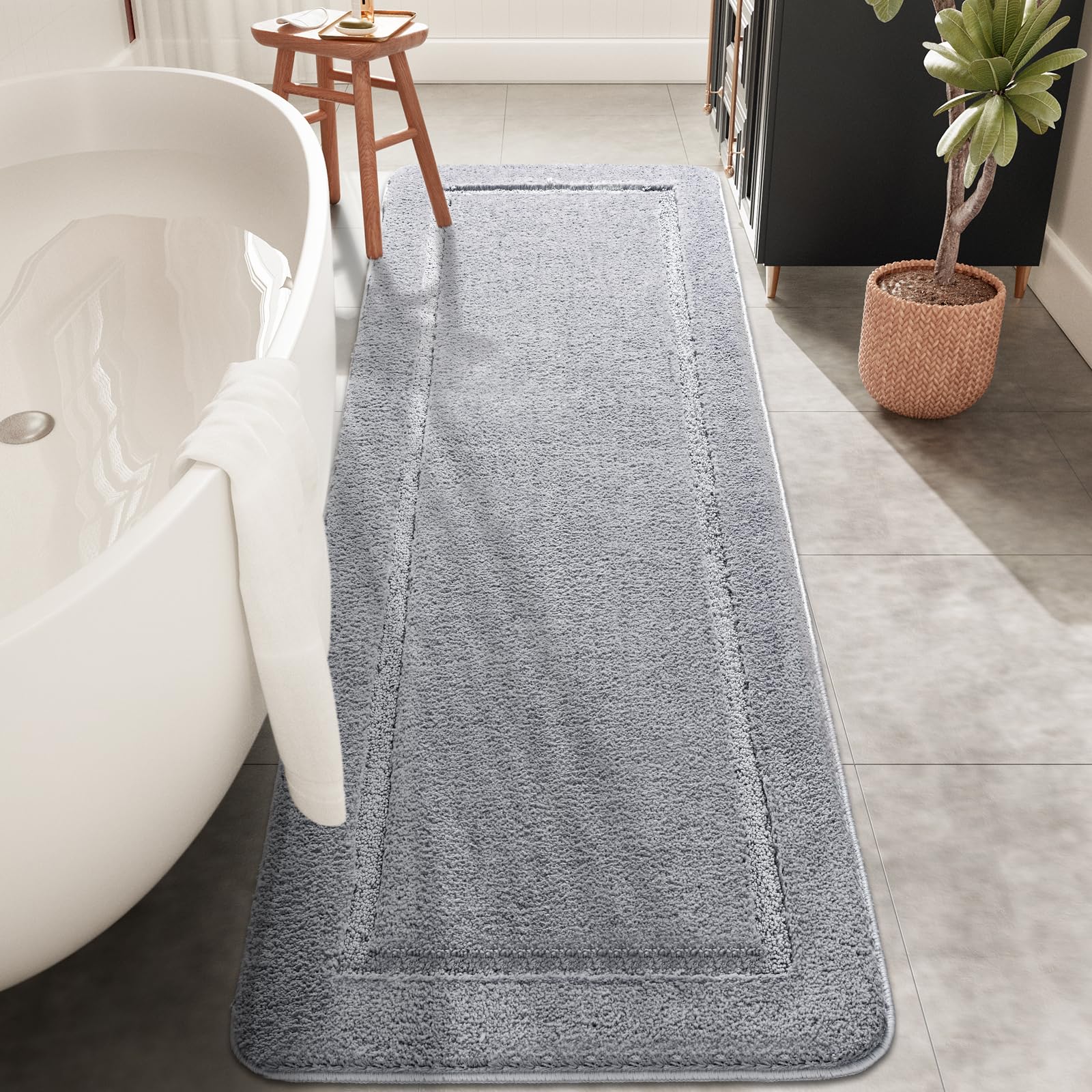 Homore Luminous Grey Bathroom Rugs,70X24 Inch Non Slip Bathroom Runner Rug, Extra Soft Long Bath Rug, Absorbent Thick Microfiber