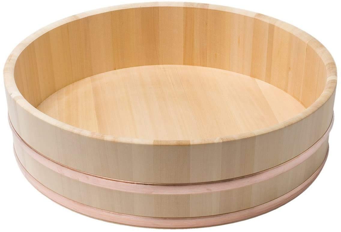 JapanBargain 4596 Japanese Wooden Hangiri Sushi Rice Mixing Bowl Tub for Sushi Restaurant Sushi Oke Sawara Cypress Wood 14.17 inches Diameter Made in Japan (36 cm)