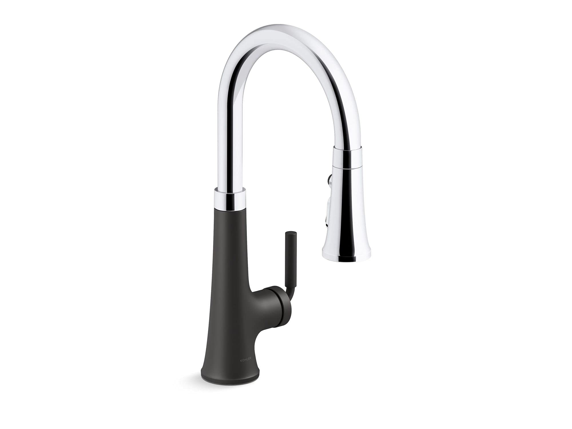 Kohler 23764-Cbl Tone Pull Down Kitchen Faucet, Kitchen Sink Faucets With Pull Down Sprayer, Polished Chrome With Matte Black