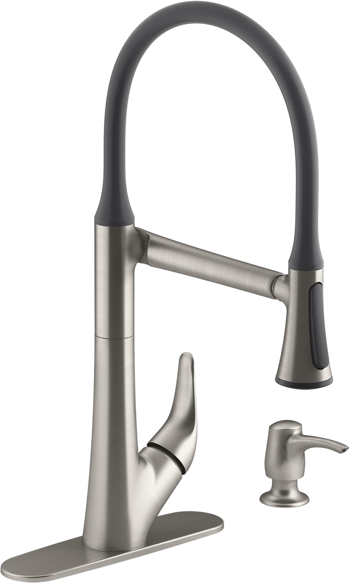 Kohler R77764-Sd-Vs Arise Articulating Pull Down Kitchen Faucet, Kitchen Faucet With Pul Down Sprayer And Soap Dispenser, Vibran