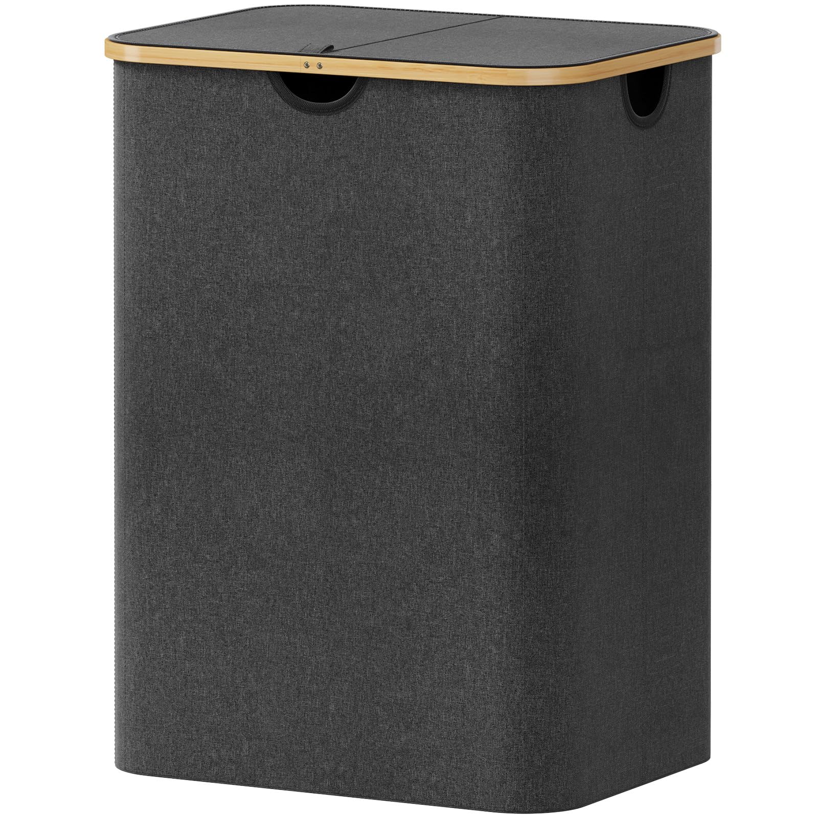Lifewit 150L Laundry Basket With Lid, Clothes Hampers For Laundry With Bamboo Handles And A Removable Laundry Bag, Large Foldable Laundry Hamper For Bedroom, Bathroom, Dorm, Laundry Room, Dark Gray
