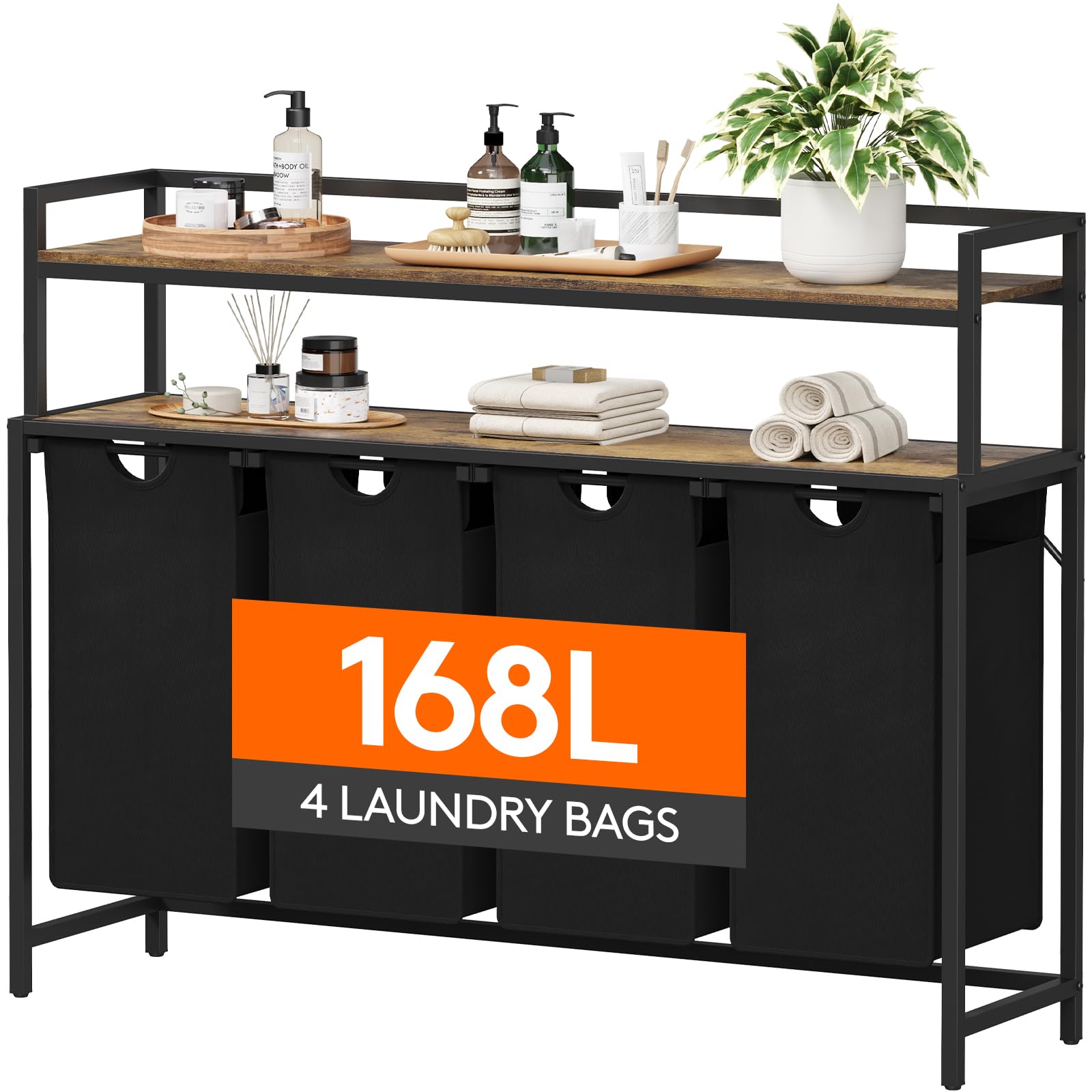 Lifewit Laundry Hamper 4 Section, 168L Pull Out Laundry Clothes Basket Organizer With Large Top Shelf And 4 Removable Bags And H