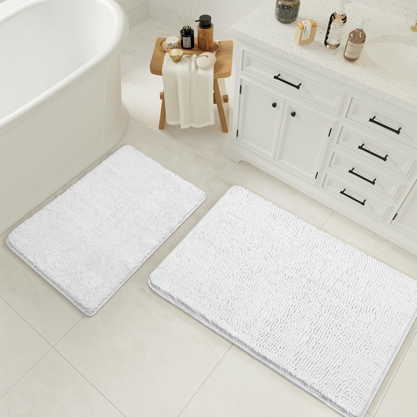 Lochas Bathroom Rugs Sets 2 Piece, 17 X 24 Plus 20 X 32 Inches Thick Non Slip Bath Rug Set, Absorbent Soft Chenille Bathroom Rug